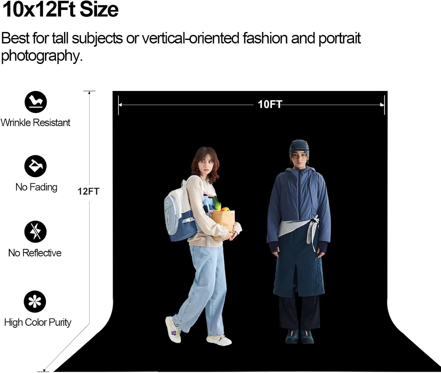 - 10x12FT LARGE SIZE:This size black photography backdrop provides a large background, perfect for portrait photography, product shoots, and video content. Its large size accommodates full-body shots and group photos with ease