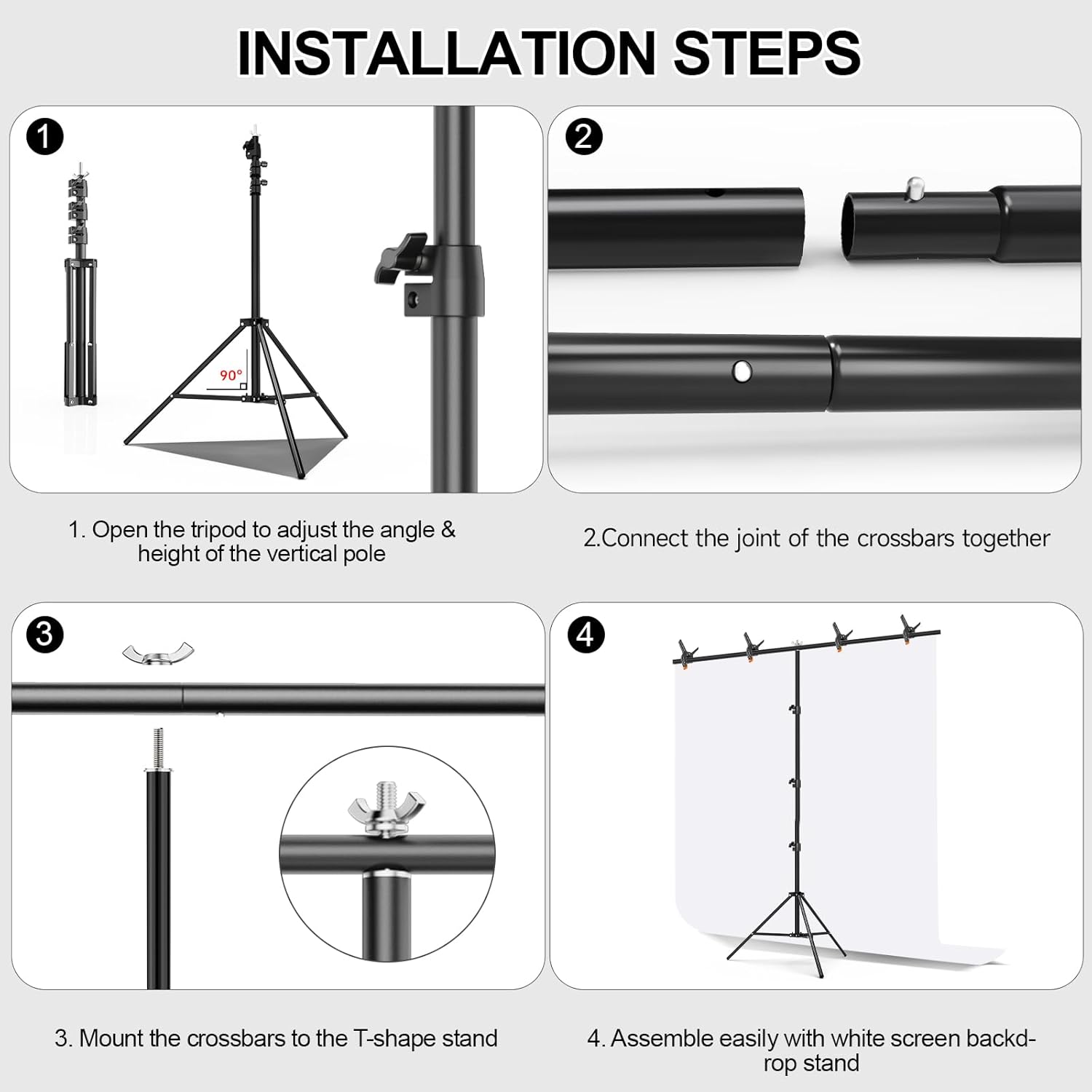 - Ideal for Multi-Scene Applications: The white backdrop and adjustable T-shaped stand are designed to work seamlessly together, making them suitable for a wide range of scenarios, from professional studio shoots to creative DIY projects