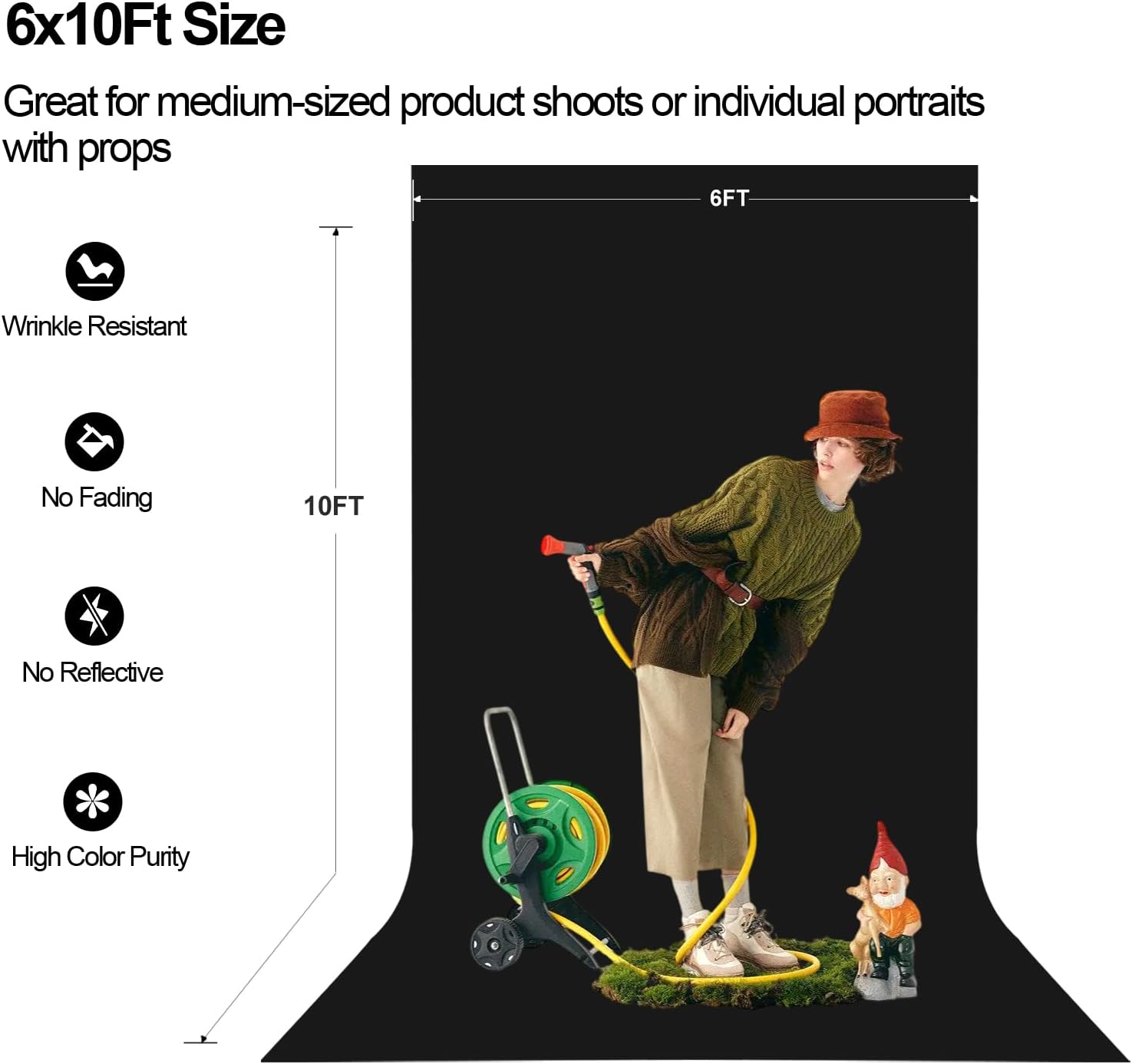 - PURE BLACK BACKDROP : BEIYANG black screen cloth is 6x10 ft in size, this black background can reduce the interference of the environment and make the subject more prominent.