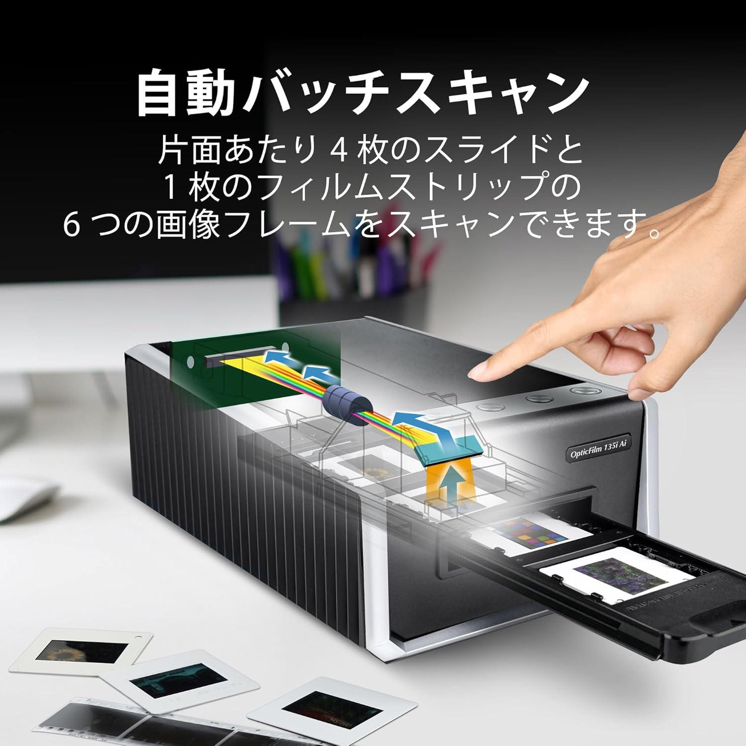 - ăGreater Productivityăâ Batch scan multiple slides and negatives with ease. The scanner comes with two sets of film holders, allowing you to scan four slides or six image frames from a single film strip at once time.