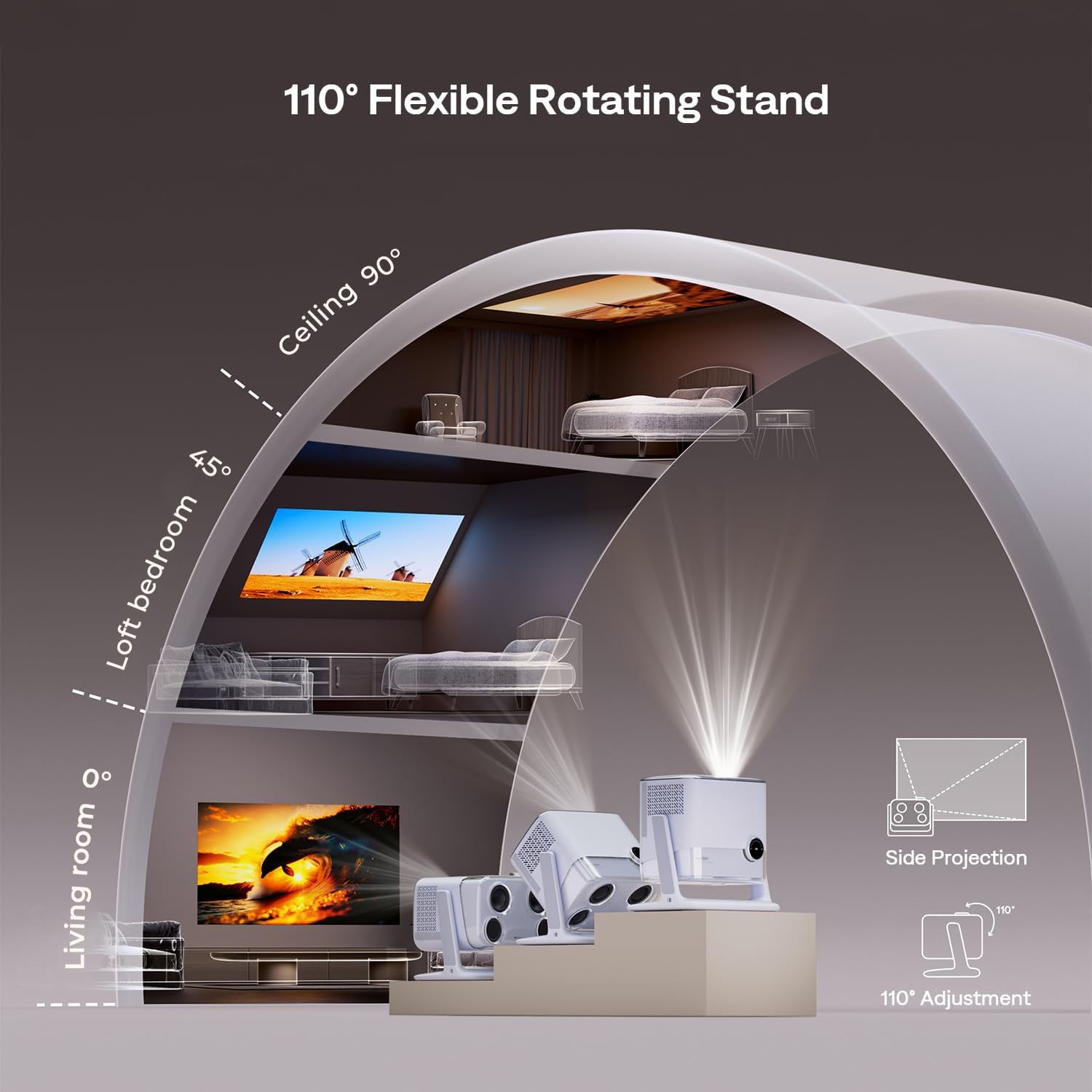 - Projector for Bedroom - 360° Visible Sound & DoIby Audio: 20W high-power speakers with DoIby Audio bring cinema-grade sound to life. The rear-facing Visible Sound design delivers deep bass and crisp highs, turning every movie night into an auditory delight.