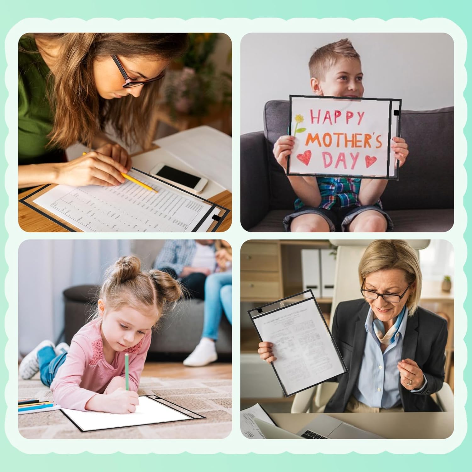 - Reusable oversized dry erase pockets can easliy be cleaned with a tissue or cloth without leaving traces, to reduce the amount of paper being used.