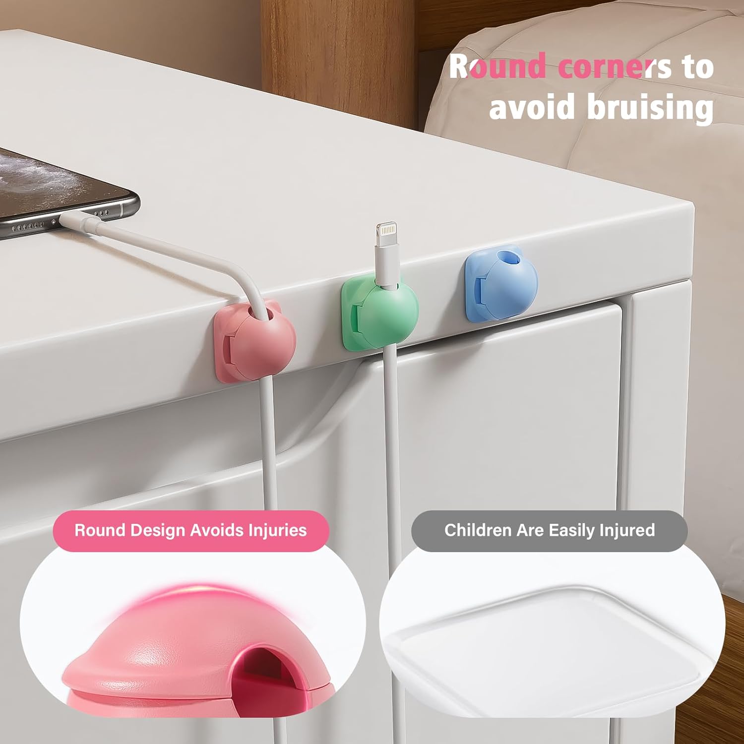 - ✨Color Your Space: Let the vibrant red, blue, and green cord holders brighten up your desk! Say goodbye to tangled cables and add a touch of cuteness and personality to your room. Whether it's your desk, nightstand, or kitchen, it will make your space look both stylish and fun.
