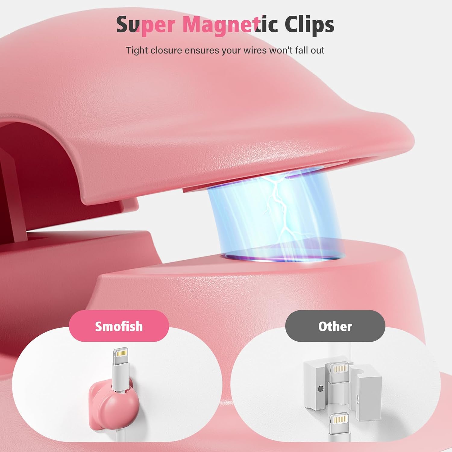 - 🔒Magnetic Grip: Powerful magnetic design keeps your cords in place, so you no longer have to worry about messy cables. Easily organize your phone charger cords, headphone wires, etc., with a simple snap. Effortlessly access your cables with one hand, and enjoy the freedom of untangled wires.