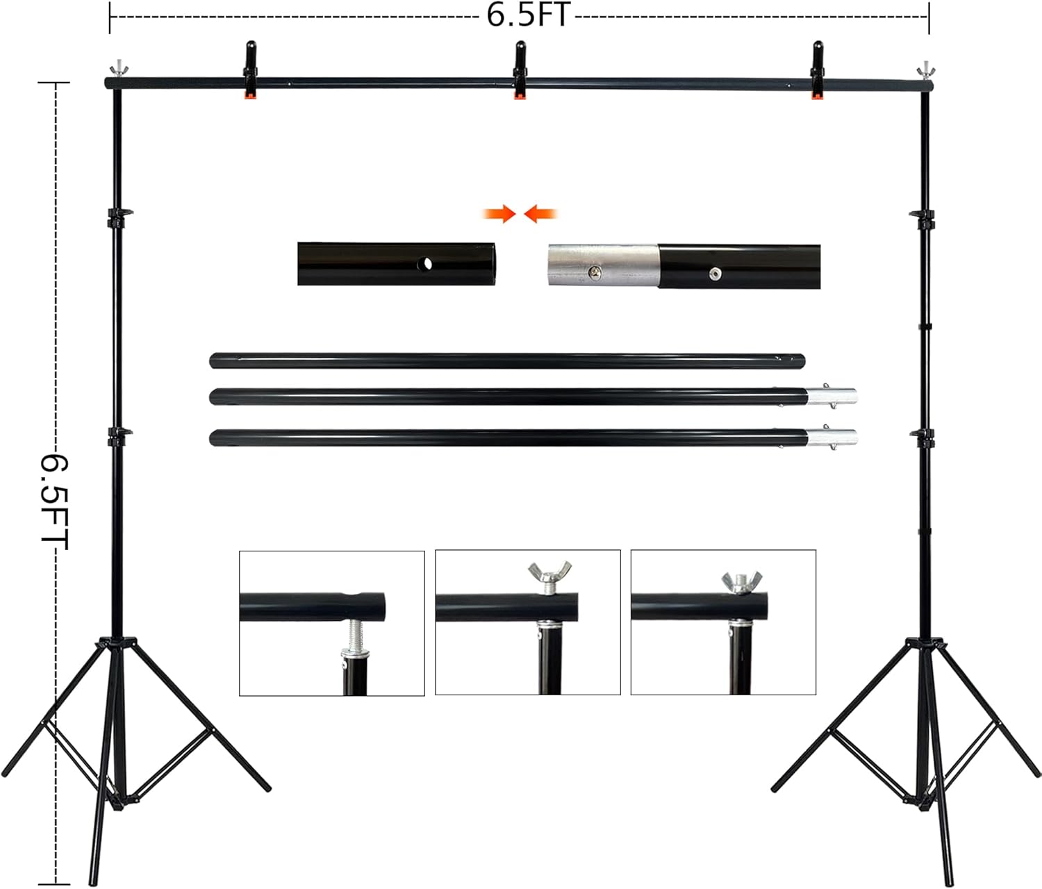 - [Versatile 2-in-1 Kit] The 2-in-1 green backdrop stand kit includes a portable dual rod stand measuring 6.5x6.5 ft and a high-quality 6x7-ft polyester green backdrop. Additionally, it comes with 3 Spring Clamps, specifically designed to meet various shooting needs, including video streaming, portrait photography, wall decoration, and parties, making it perfect for creatives and professional photographers