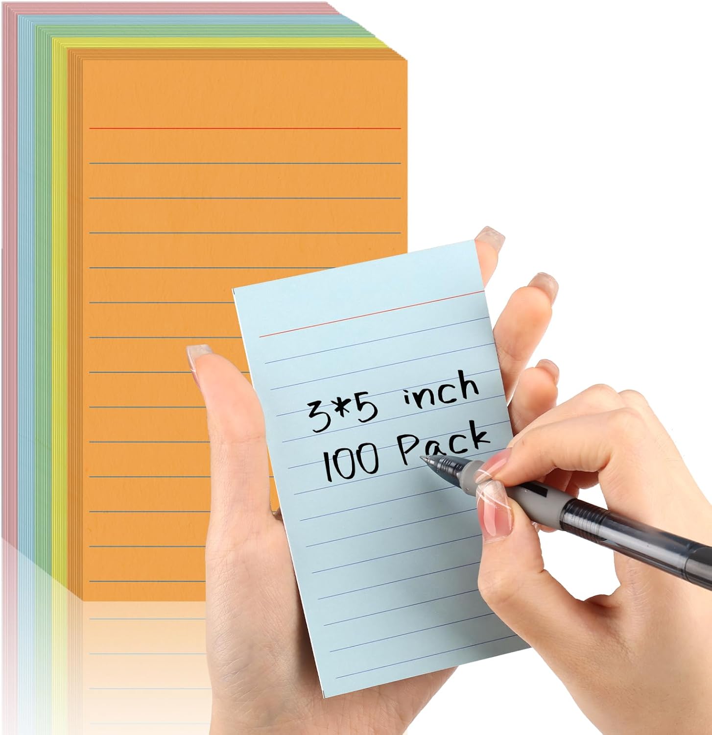 100 Pcs Colored Ruled Index Cards 3x5 Vertical Index Cards Notecards To Do List Cards Mini Memo Pad Daily to Do List Notepad Study Cards Double Sided Flashcards For Studying Note Taking
