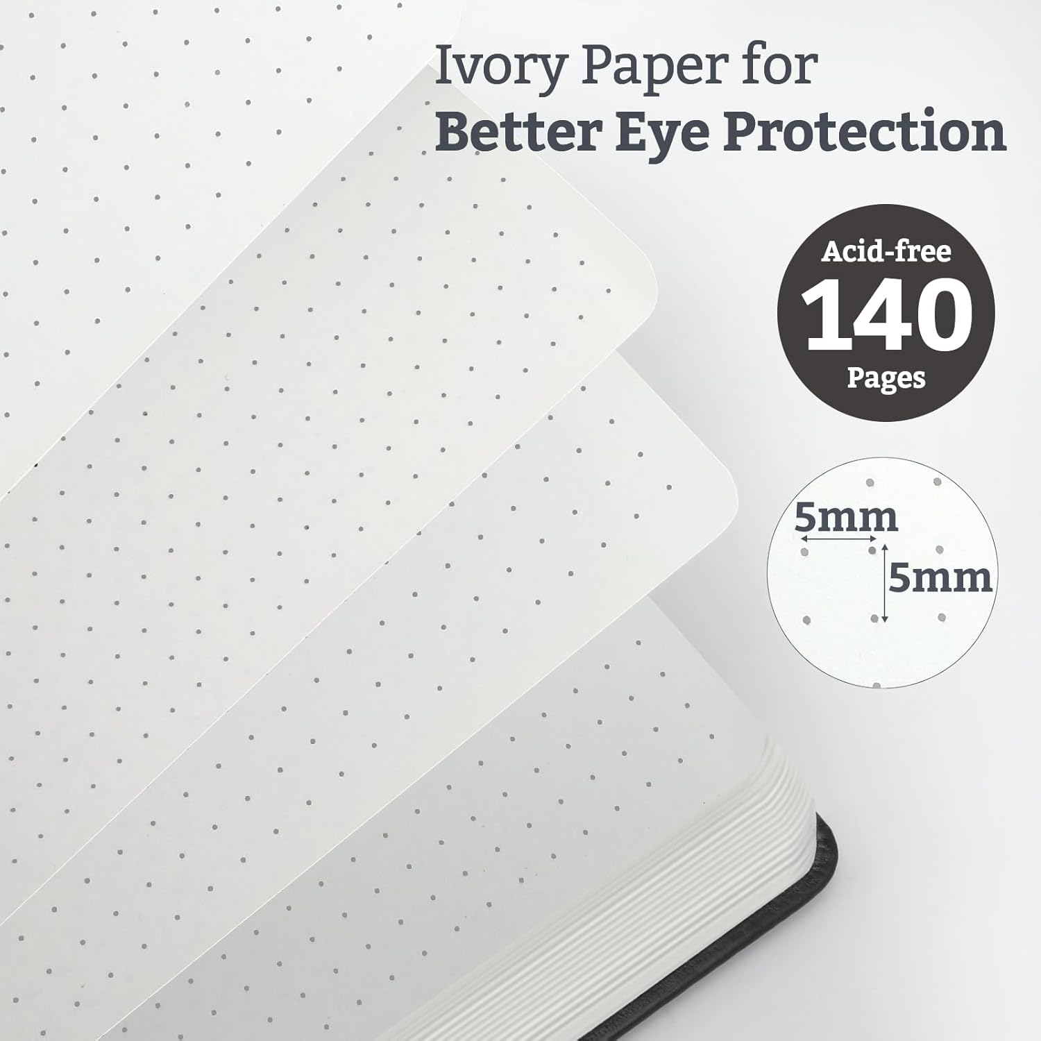 - Dotted Pages (2-Pack): Each notebook features 140 pages (70 sheets) of dotted, 120gsm acid-free paper resists bleeding and ghosting, compatible with most pens. Ivory hue eases eye strain.