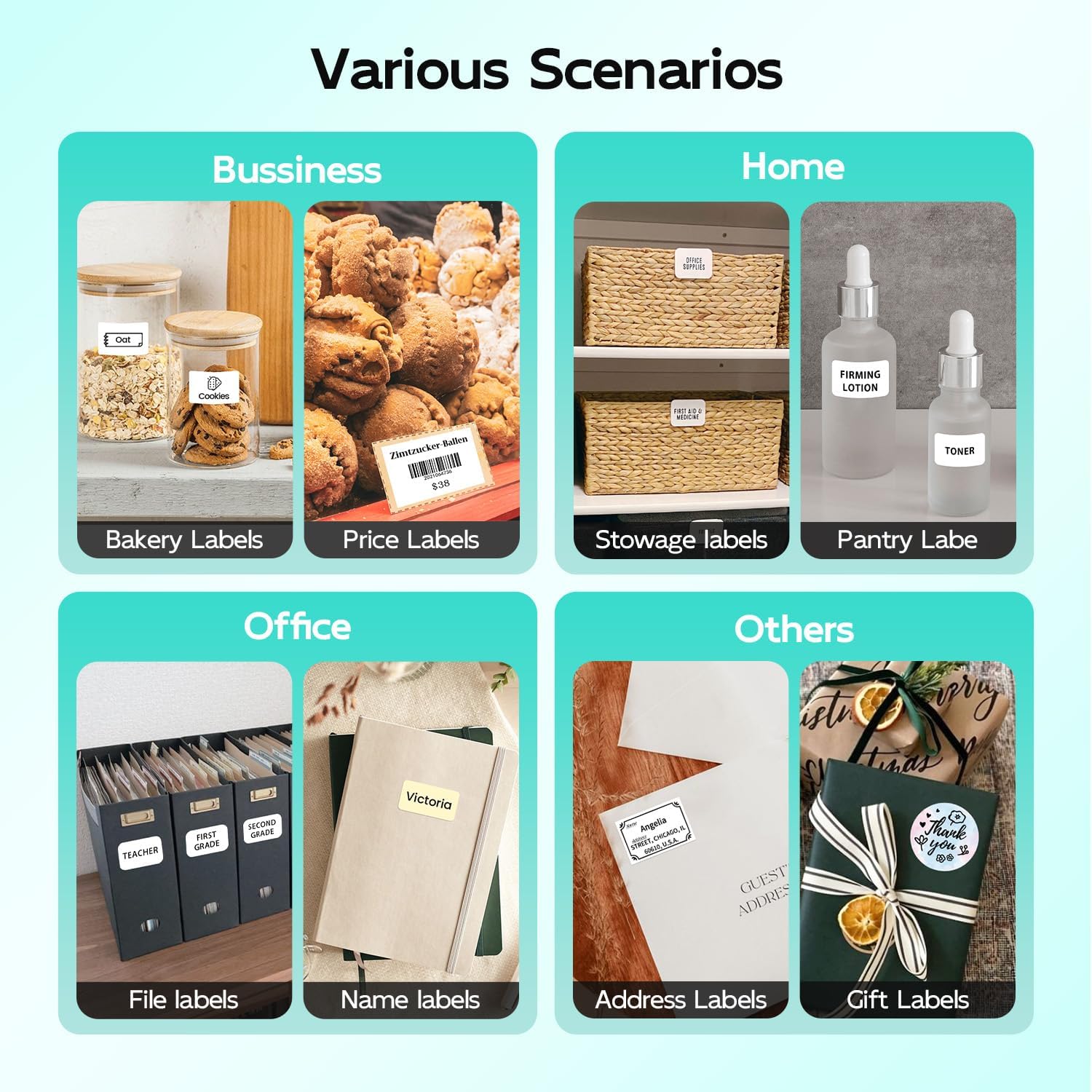 - ăMultifuncional UsageăPhomemo M120 Label Printer supports 20-50mm label size, built-in size axis, convenient for you to calibrate the label size. The label printer can support printing barcode, 2D code, address, name, jar labels, food labels, storage labels, holiday blessing labels and so on. Whether you are a housewife or a small businessman, the thermal label printer is the best choice for efficiency
