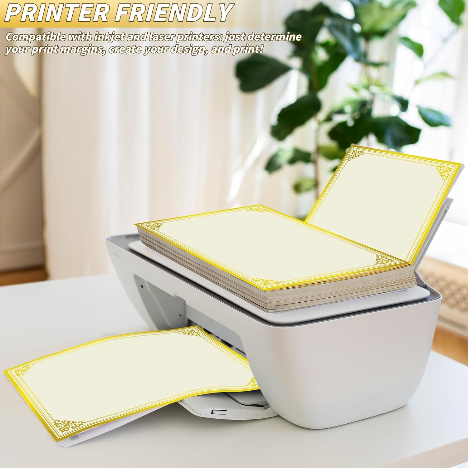 - [Printable]: These 8.5 x 11 in/ 22 x 28cm award certificates papers are letter-sized ,laser and lnkjet printer compatible, and can be used in vertical or horizontal formats. Made of high-quality offset paper, with advanced printing technology, to ensure clear printing results, give your professional certificate paper a high-end look and texture, it is an ideal choice for printable certificates.
