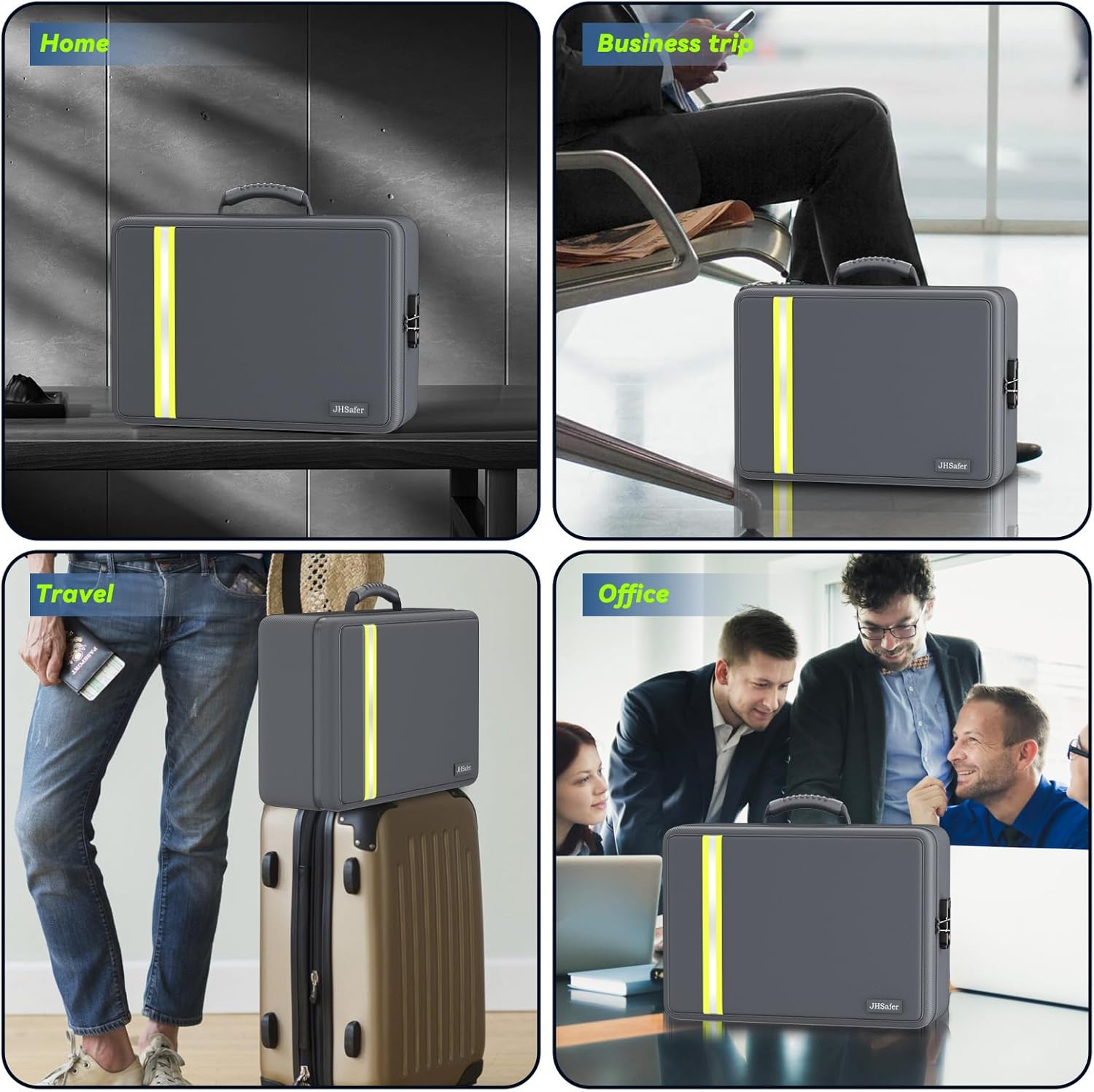 - Suitable for Home, Travel, Business Trip: We made many designs for traveling and business trips. The ergonomic handles are designed to take the strain off the wrist. The strap on the back of the document safe is designed to attach to luggage trolleys for added portability. The main interior pocket is designed with a fixed strap to enhance the stability of the contents
