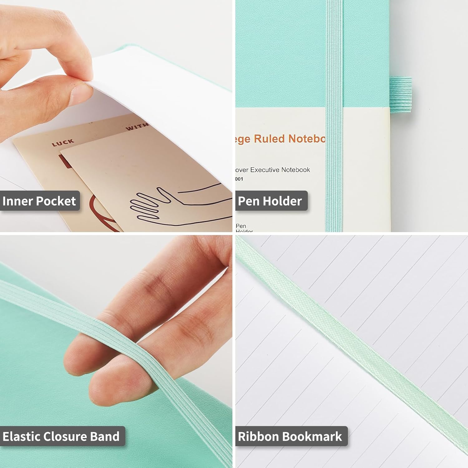 - Hardcover Business Notebook: A5 Size classic college ruled lined notebook comes with a soft touch PU leather cover, The notebook measures 5.5"×8.3". It is the perfect size for carrying around or put into your bag.