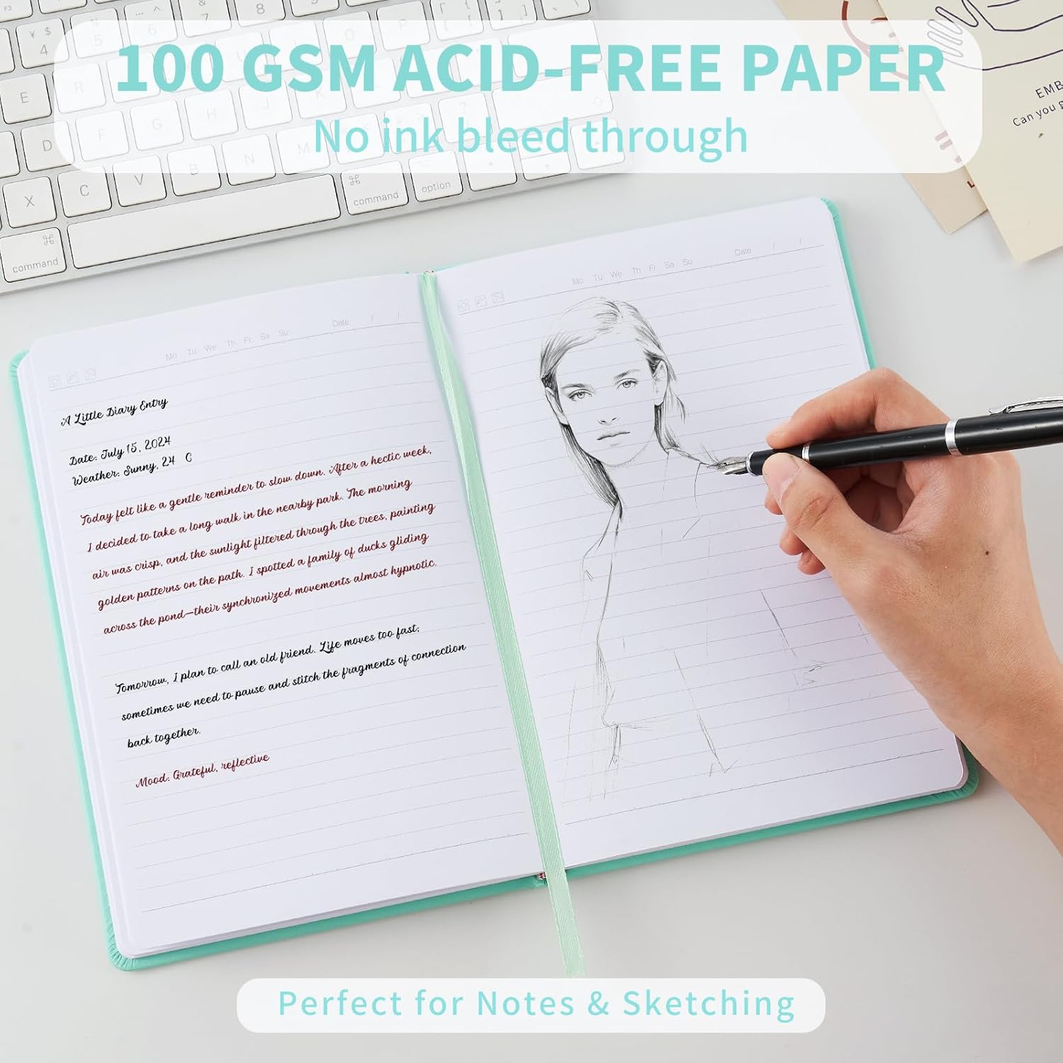 - 180°Lay-flat Design for Writing Ease: These line journal notebooke dsigned to lay flat, making it comfortable and easier to write for both right and left-handed users. Perfect for journaling and note taking.