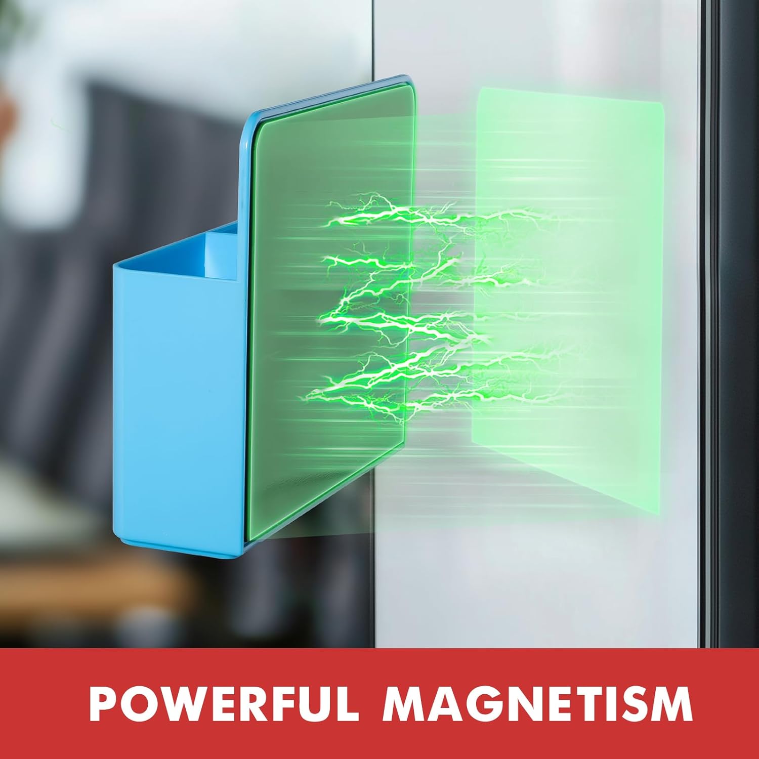 BEYGORM 2 Pack Plastics Magnetic Pen Holder for Refrigerator, Dry Erase Marker Holder for Whiteboard,Magnet School Locker Organizer Accessories, Pencil Cup, Pen Caddy, Classroom Organization(Blue)