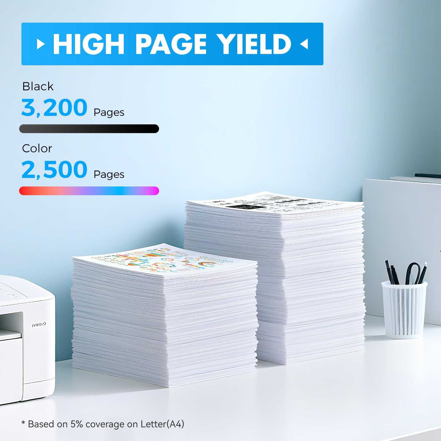 - 【Page Yield】Up to Black is 3,200 pages per black cartridge and Color is 2,500 Pages per color cartridge (Letter/A4, at 5% Coverage).