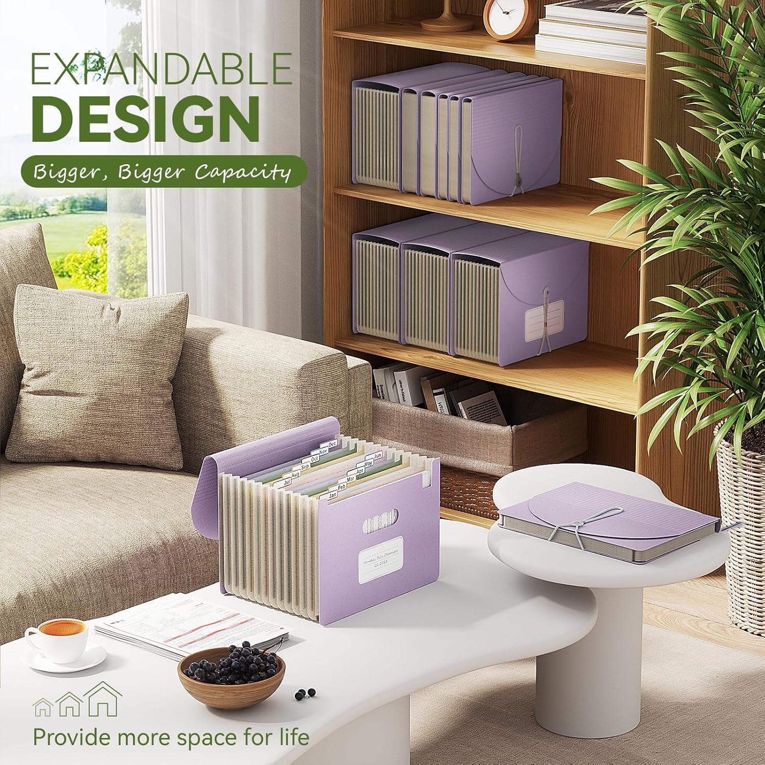 Accordion File Organizer, 13 Pockets Wheat Straw Expanding File Folder, Portable Monthly Paper Bill Tax Receipt Organizer, Letter A4 Size Document Holder with Colorful Tab-Lavender Purple