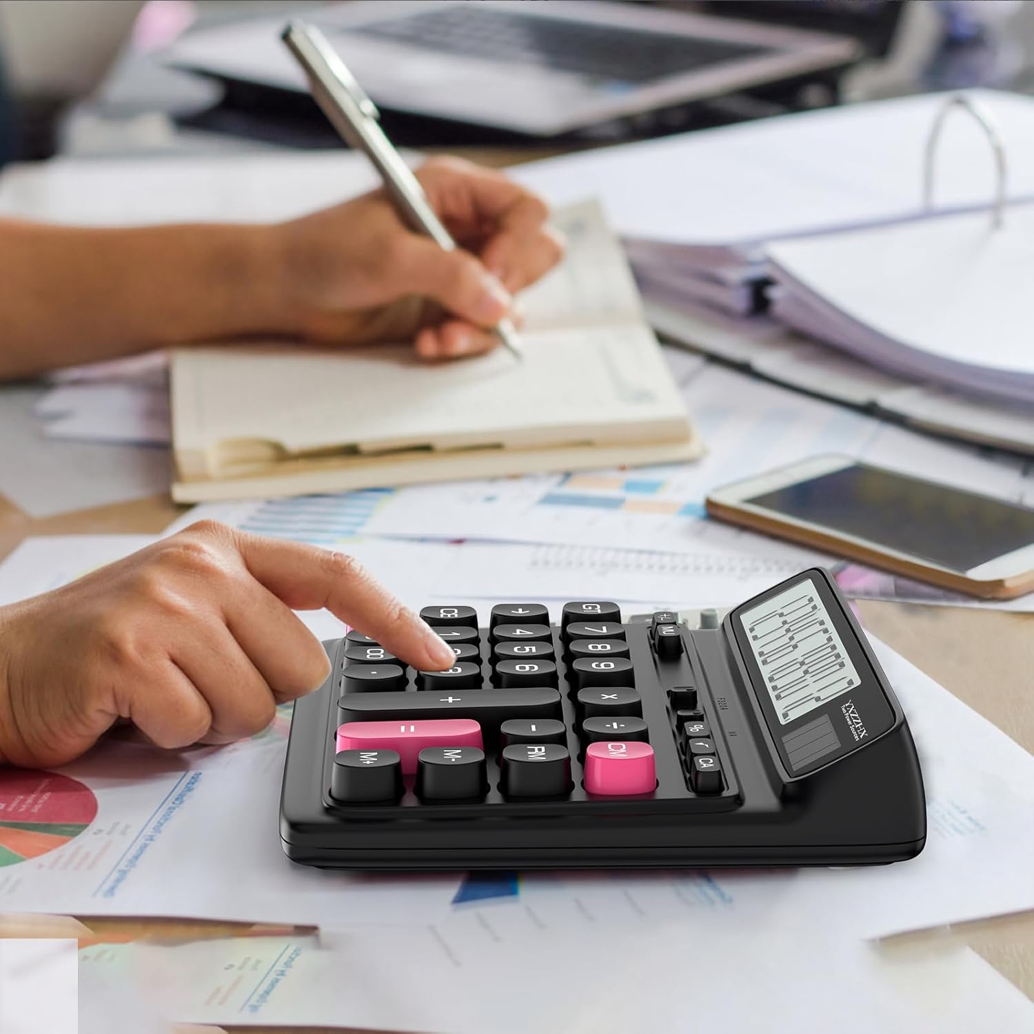 Desktop Calculator with Extra Large 5-Inch LCD Display, 12-Digit Two Way Power Solar & Battery Office Calculator with Big Buttons for Business, Accounting & Home Use(Black)