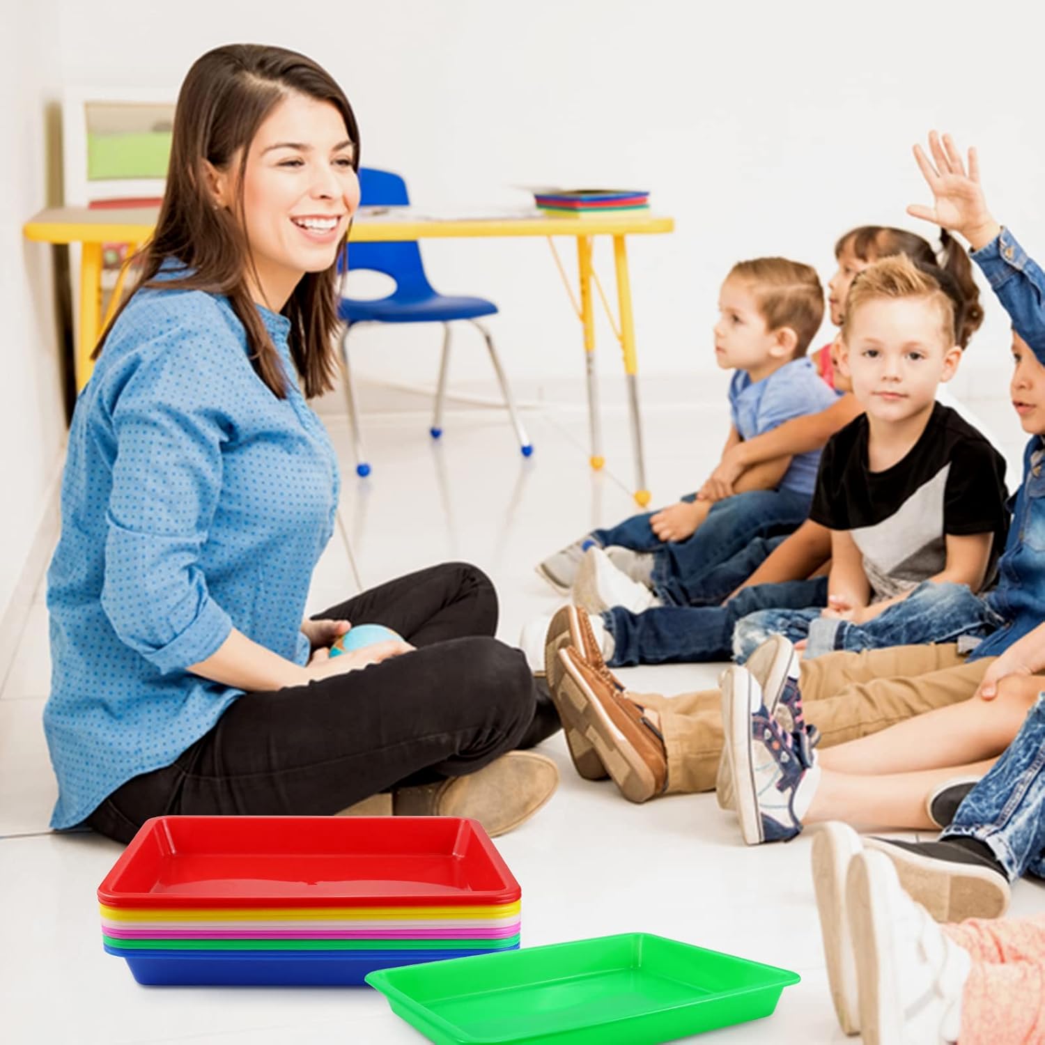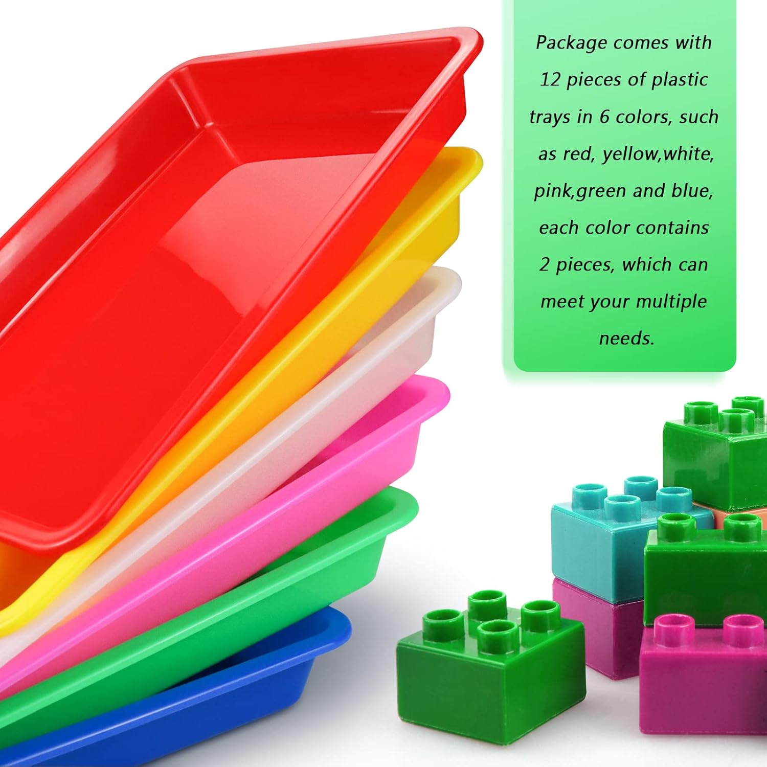 Bercoor 16 PCS Plastic Art Trays for Classroom, Colorful Activity Crafts Tray Serving Tray Organizer Tray for Kids School DIY Projects, Painting, Jewelry, Beads, Home Organizing Supply
