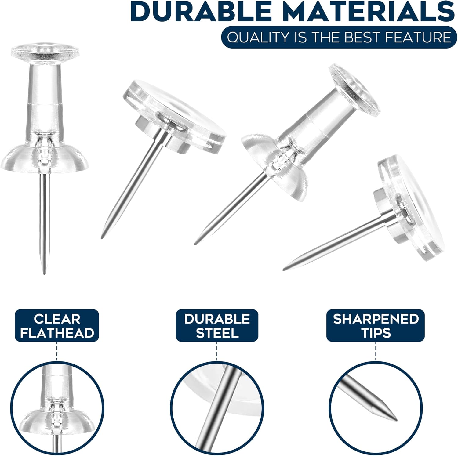 - Durable and Rust-Proof - The premium-quality clear push pins for wall hanging withstand rust and wear. They're reliable and reusable for a variety of projects, presentations, or decorative displays.