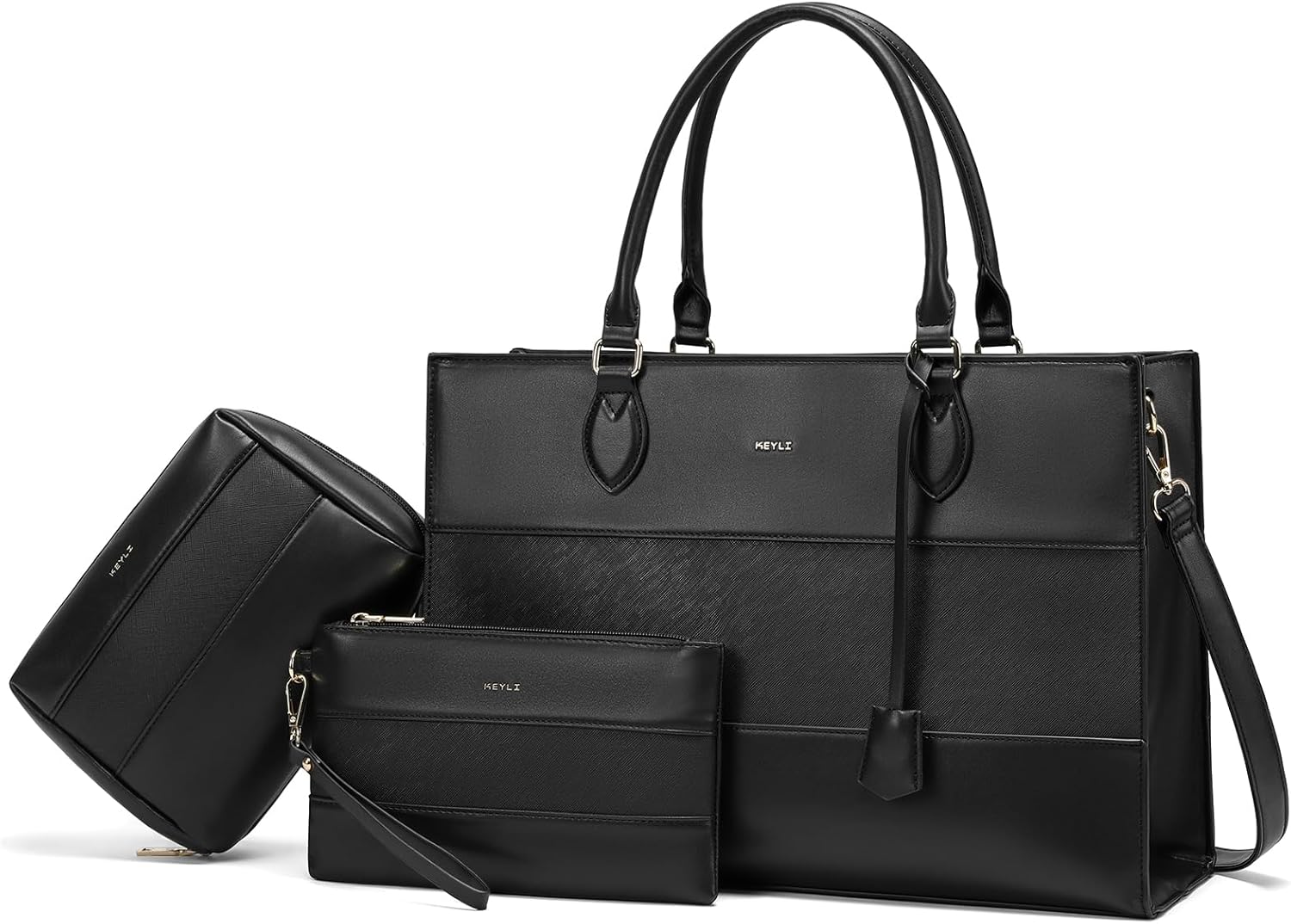 Keyli 3pc Sets Laptop Bag for Women,15.6 Inch Work Tote Bags Waterproof Leather Business Computer Briefcase Shoulder Handbag