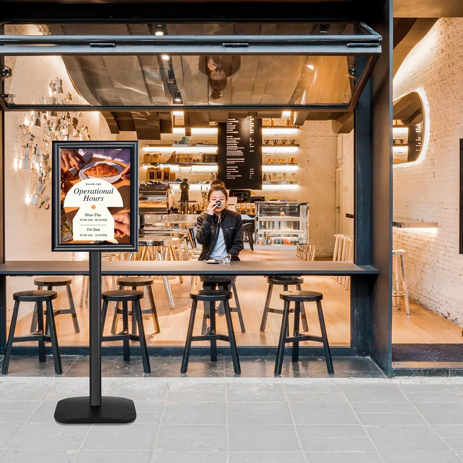- ✅【Easy Poster Change and Protection】Featuring a front open snap frame for easy poster changes. It includes a UV-resistant PVC l that protects posters from weather, sunlight, dust, and fingerprints, ideal for exhibitions, showrooms, and retail environments.