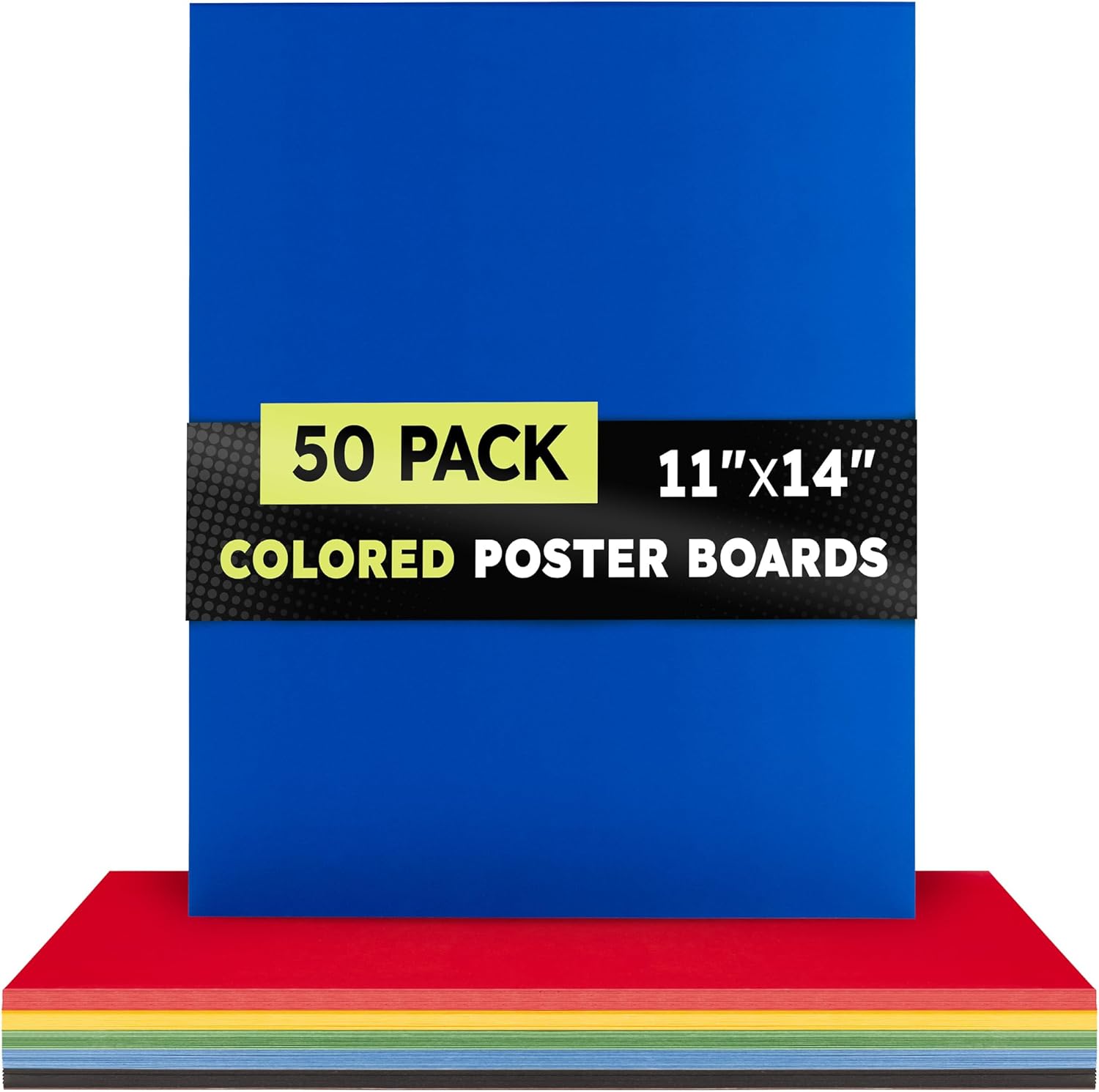 Hygloss Medium Colored Poster Board 11x14 - 50 Assorted Standard Color Poster Boards Bulk Pack - Red, Yellow, Green, Blue, Black - 10 Pt. Thickness Poster Board Paper, Posterboard Multipack 11" x 14"