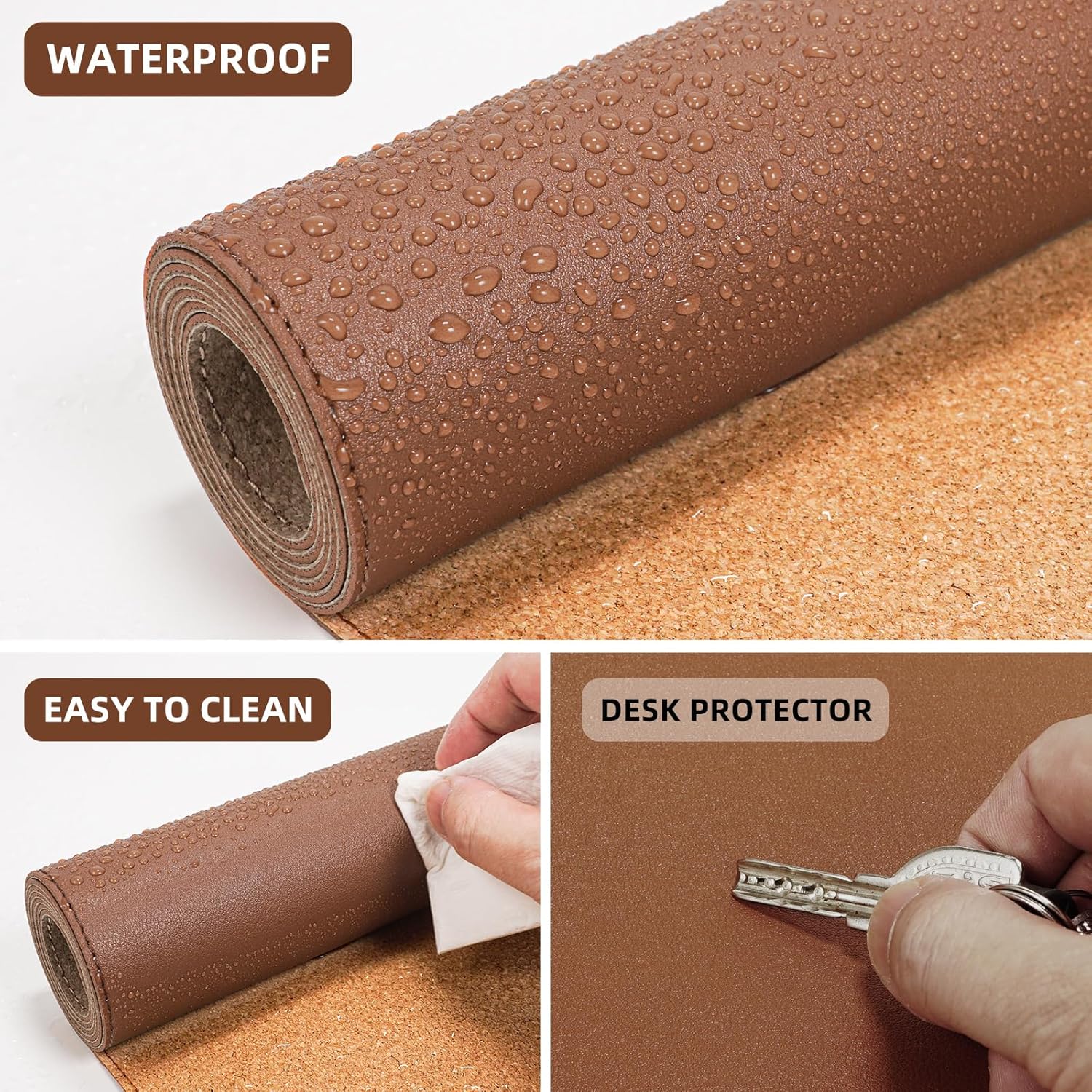 AFIING Leather Desk pad Protector, Large Non-Slip Office Desk Mat with Natural Cork & PU Leather, Waterproof Writing Mouse Pad for Office and Home (55in*17in,Brown)