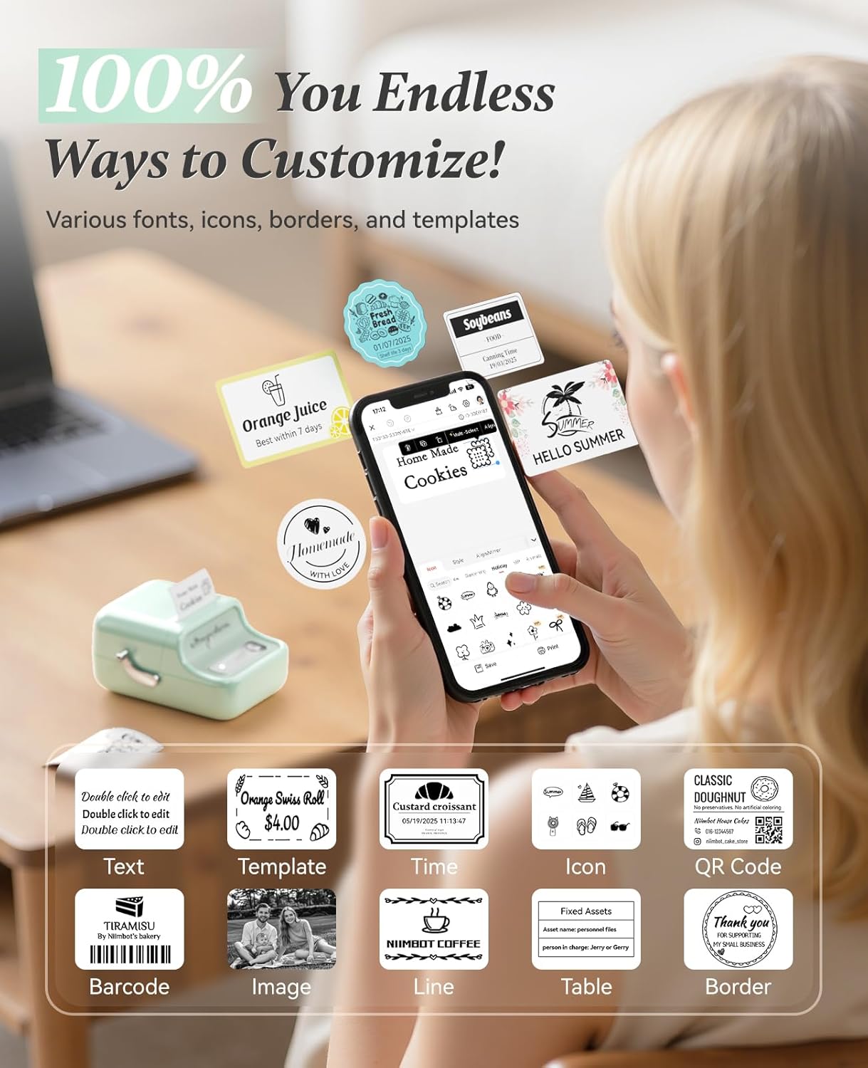- 【Powerful & Wireless】 NIIMBOT B21 Bluetooth label maker can auto identify the label paper. 4 hours continuous working time after 1.5 hours charging. Our free NIIMBOT APP have functions like scan, image recognition, batch printing, serial number are offered, 20+ fonts, 1000+ icons, 100+ borders are provided for custom label designs