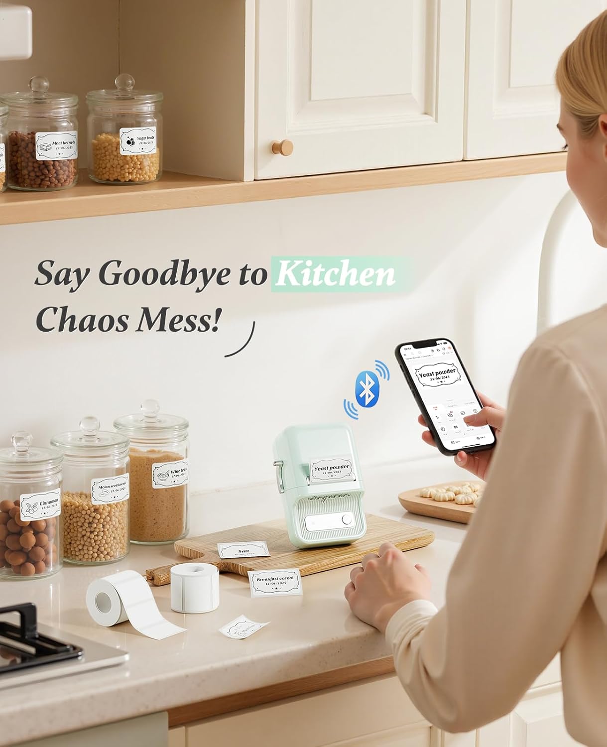 NIIMBOT B21 Label Printer,Bluetooth Thermal Label Maker,Ideal for Home Organization,Business,Ofice,50x30mm Labels,230Pcs(Mint Green)