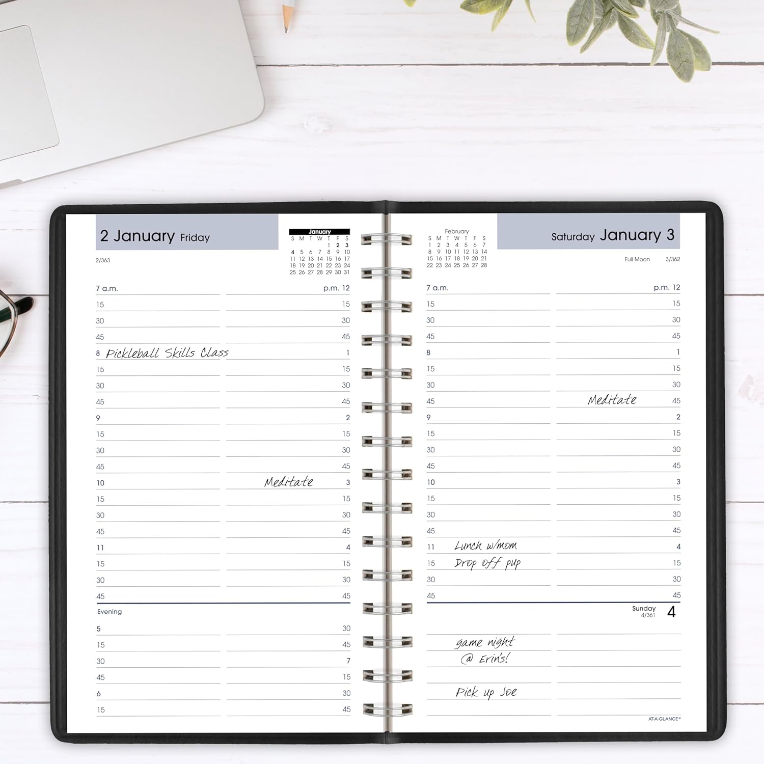 AT-A-GLANCE 2026 Appointment Book Planner, Daily, 5" x 8", Small, Quarter-Hourly, DayMinder, Black (G1000026)