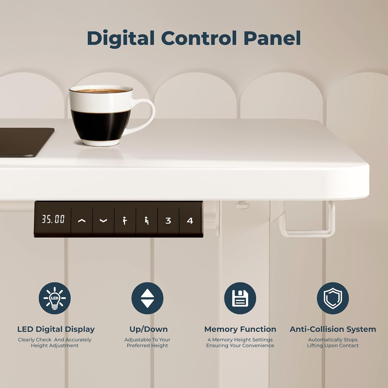 Adjustable Stand Up Desk with Memory Preset, Standing Desks 55 x 24 Inch Electric Home Office Desk Computer Workstation Splice, White Top + White Frame