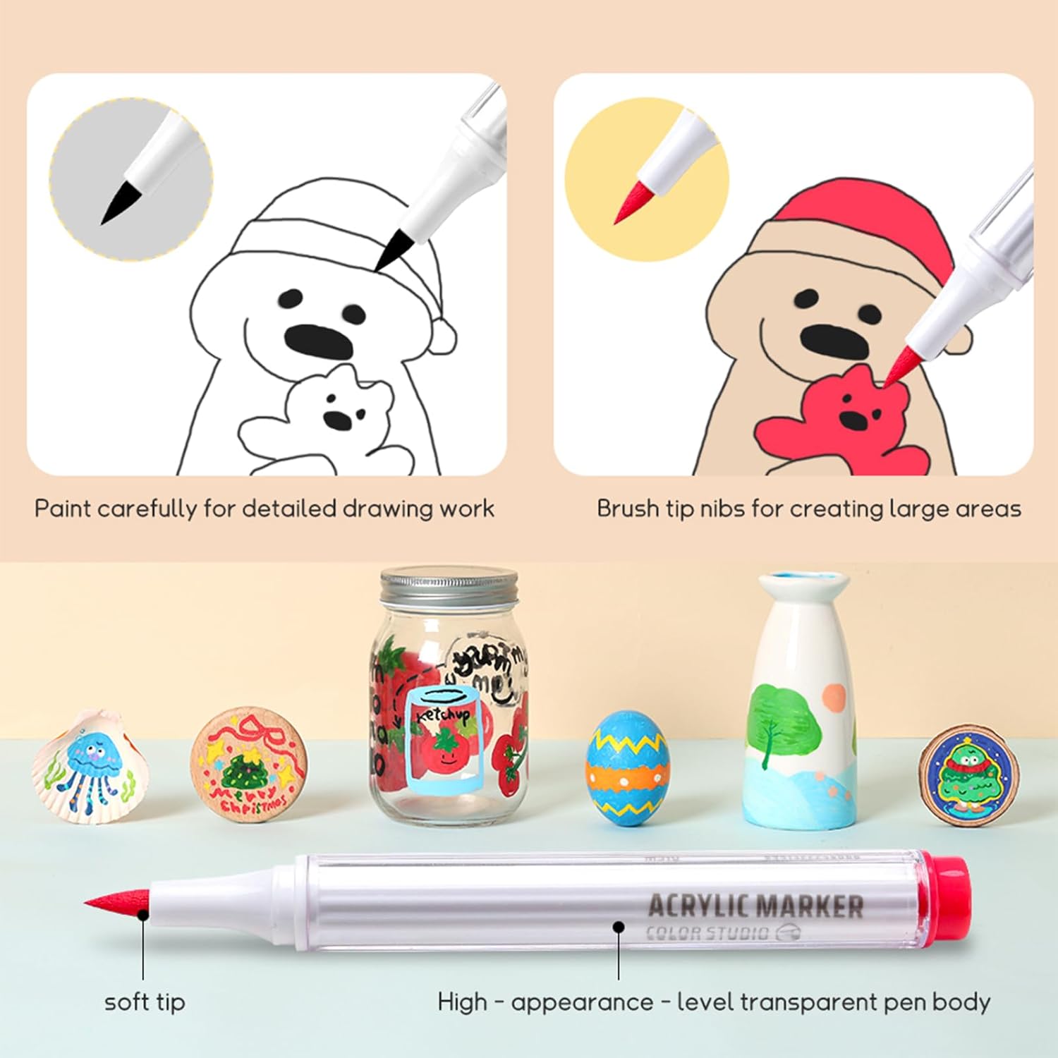 126 Color Acrylic Paint Pens, Soft Brush Tip Acrylic Paint Markers, Permanent Markers for Canvas, Rock Painting, Wood, Stone, Glass, Ceramic, Fabric Painting, DIY Crafts