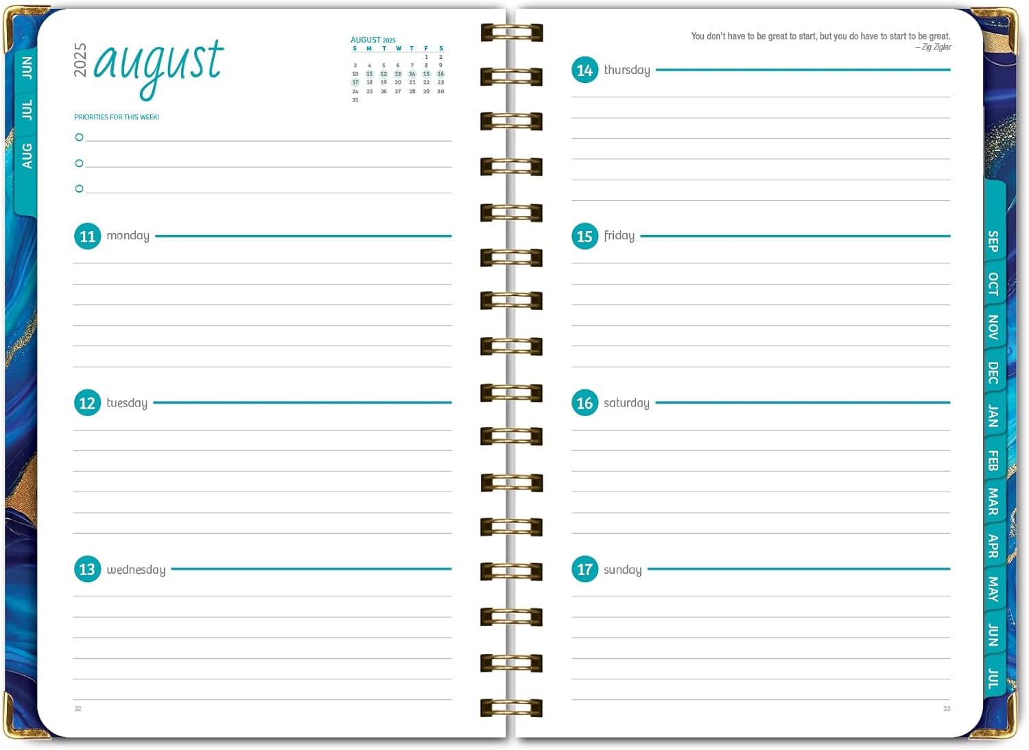 HARDCOVER Academic Year 2025-2026 Planner: (June 2025 Through July 2026) 5.5"x8" Daily Weekly Monthly Planner Yearly Agenda. Bookmark, Pocket Folder and Sticky Note Set (Dark Blue Marble)