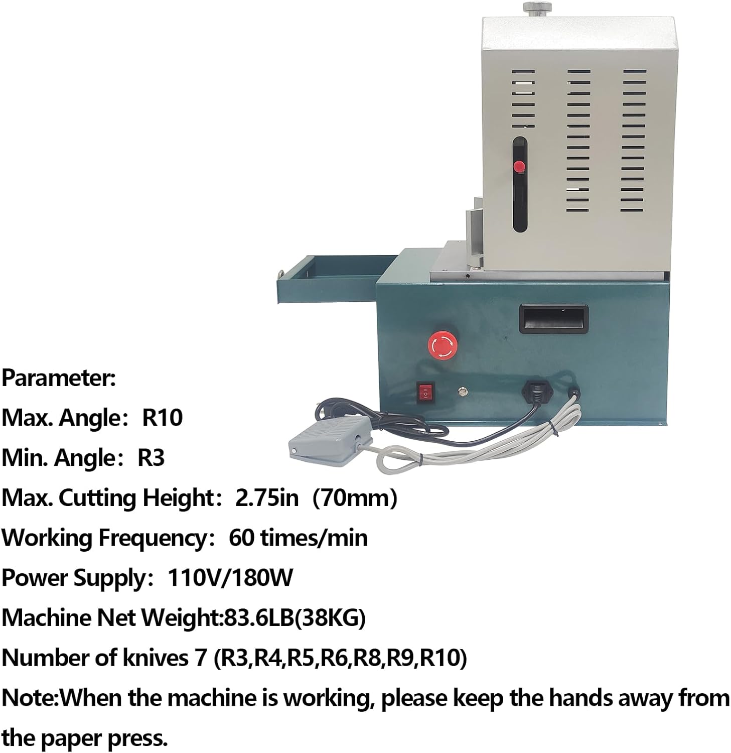 Electric Corner Round Cutting Machine with Foot Switch Electric Corner Rounder with R3 R4 R5 R6 R8 R9 R10 Seven Kinds of Knives for Name Card Notebook PVC 110V 180W