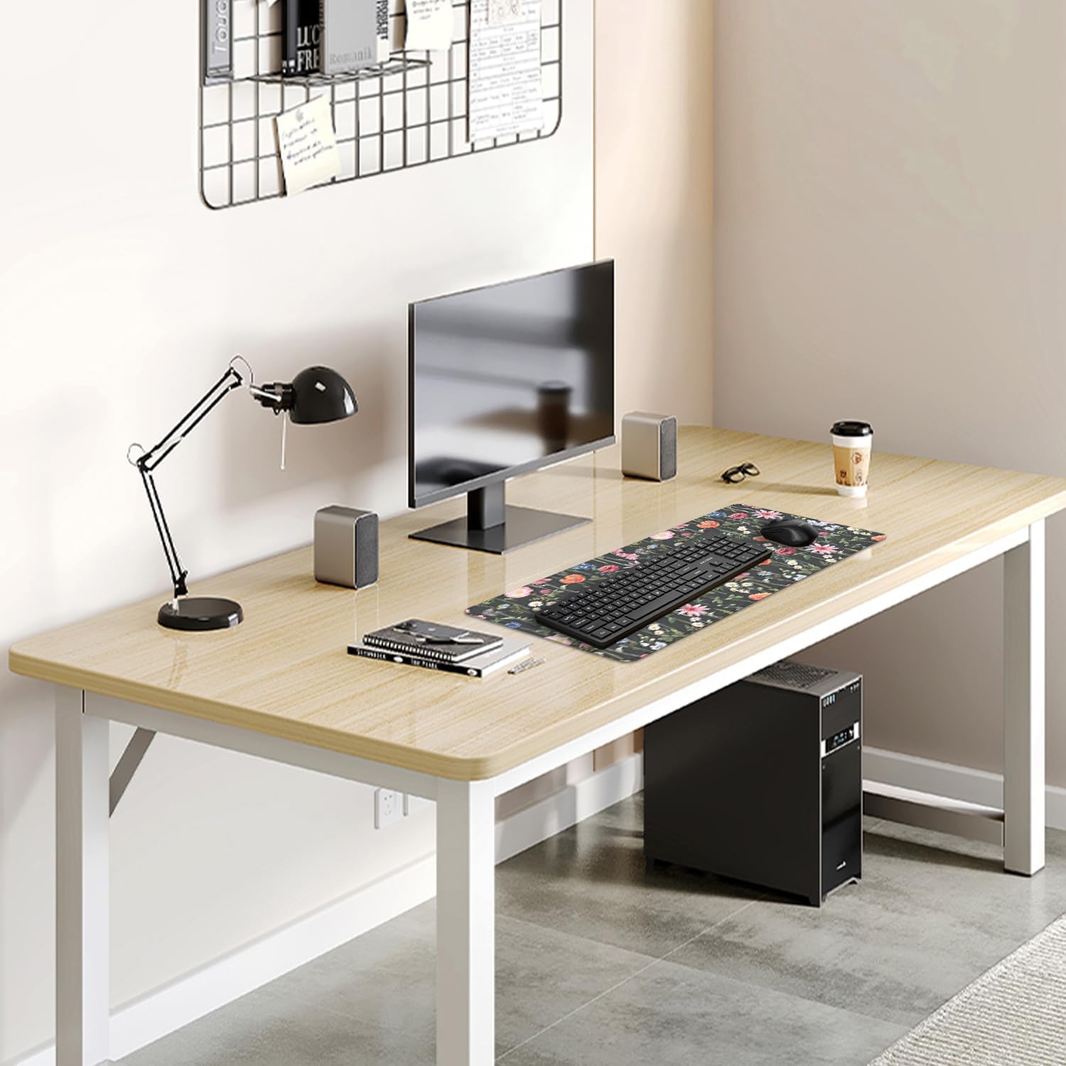 Black Background Watercolor Flowers Desk Pad Mouse Pad,Large Floral Mouse Mat with Stitched Edges,Non-Slip Rubber Base Mousepad for Office PC Keyboard Laptop and Home Work Desk Mat(27.5X11.8 in)