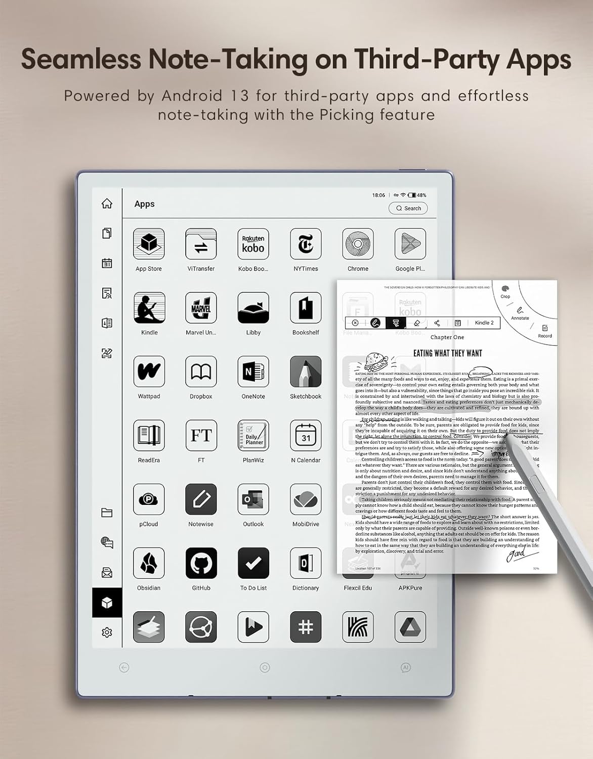 - GREAT 300PPI CLARITY: Enjoy an eye-friendly reading experience with 300PPI and 2560x1920 resolution. Read ebooks on electronic notebook comfortably for hours without backlight, glare, or eye strain