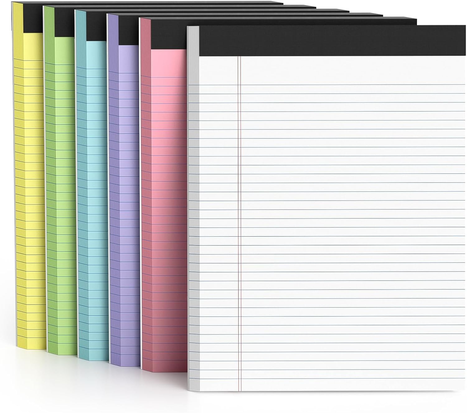 6 Pack Colored Legal Pads 8.5 x 11 College Ruled Paper Note Pads Narrow Ruled 50 Sheets per Notepad Perforated Writing Pad Durable Sturdy Back 8x11 Pads of Paper Pink Purple Blue Green White Yellow