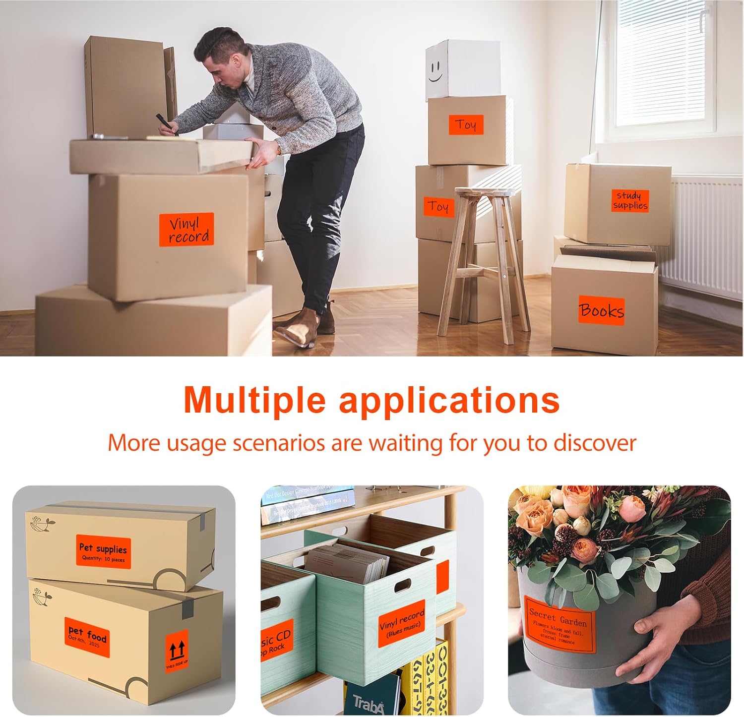 3 X 5 Inch Printable Waterproof Rectangle Color Coding Labels, 300 Per Roll Adhesive Color Coding Stickers for Bar-Codes, Address, Small Business Labeling, Fluorescent Orange