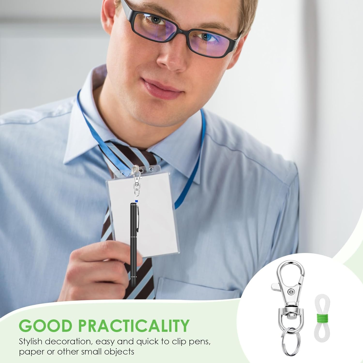 - Premium Quality and Easy Installation: Each pen clip is crafted with a durable alloy lobster clasp and a high-elastic silicone sleeve, designed to endure daily use. Simply stretch the silicone sleeve around your pen for a snug, secure fit. These clips effortlessly attach to badge reels, lanyards, or other compatible accessories
