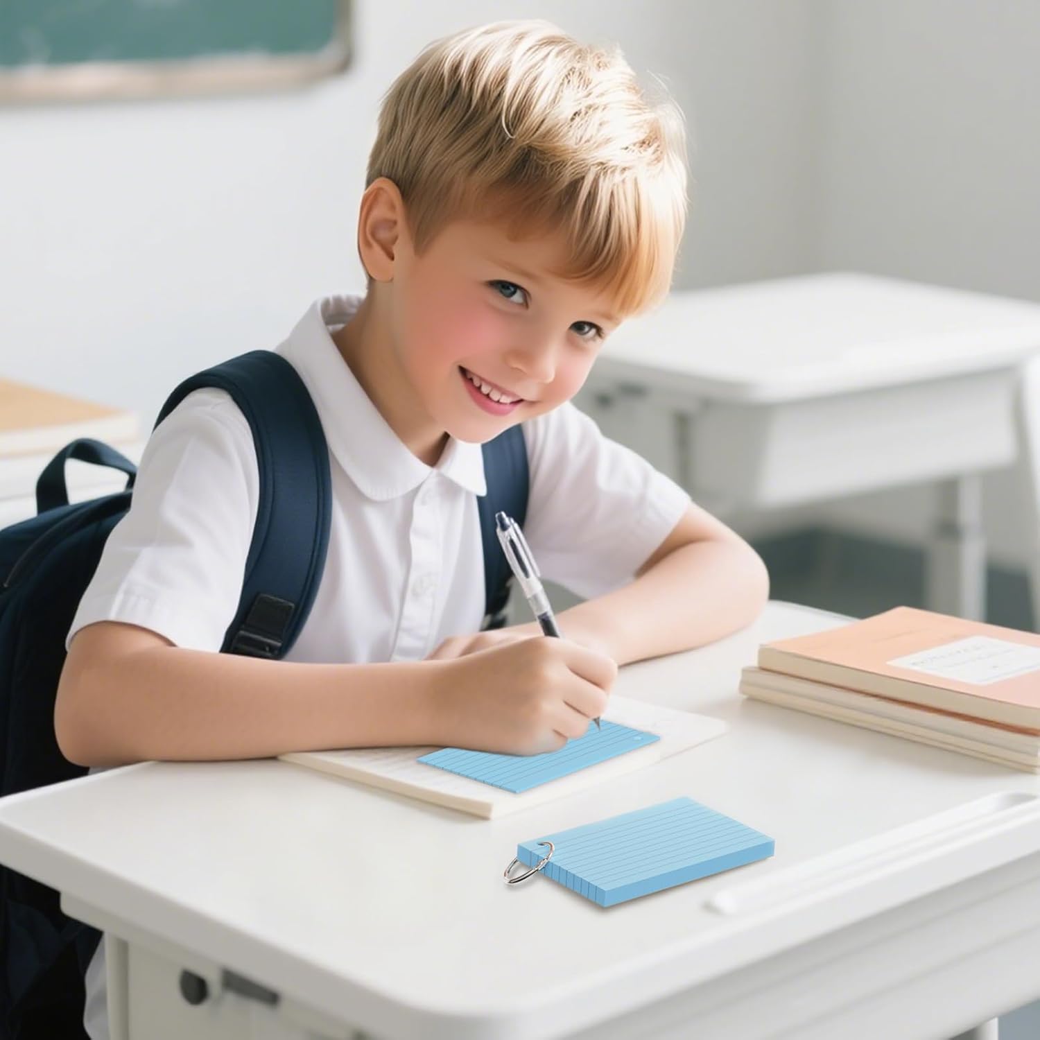 250 Count Blue Index Cards 3x5 Inch with Key Ring, Color Flash Index Card (50 Sheets Each), Durable & Portable Note Taking for Students, Teachers, Study Note Cards for Office Home School