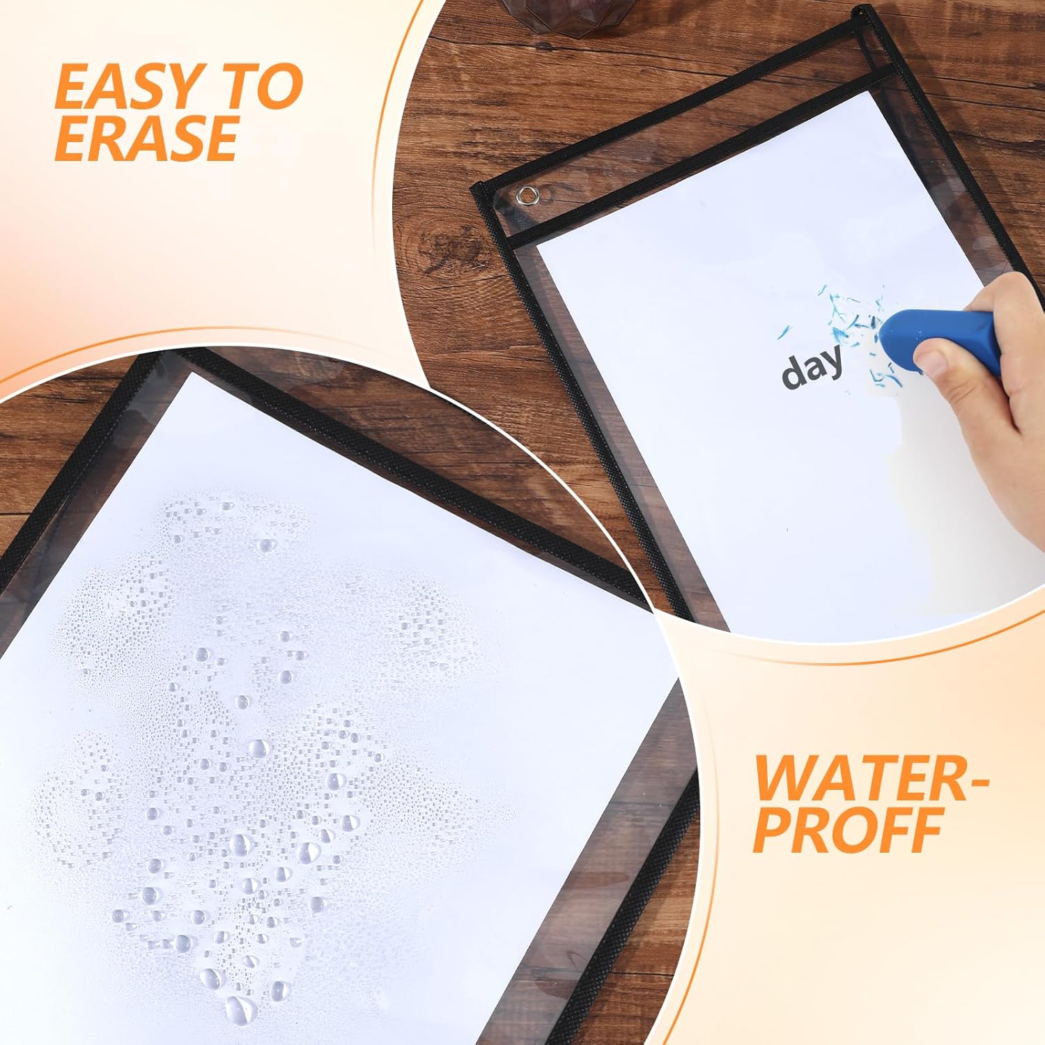 - Wide Application: Dry erase pockets with hanging strap, you can hang it on your shelve or hook to display the paperwork. The clear pocket sleeves have a hole, you can hang it or storage them by through the hole. You can write on the dry erase sleeves, you can wipe it and use it again.