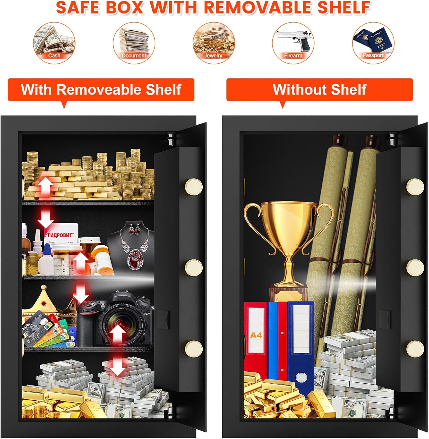 4.5 Cubic Large Fireproof Safe Box with Fireproof Document Bag, Personal Security Home Safe with 3 Removable Shelf, Anti-Theft Lock Box for Documents Money Jewelry Valuables