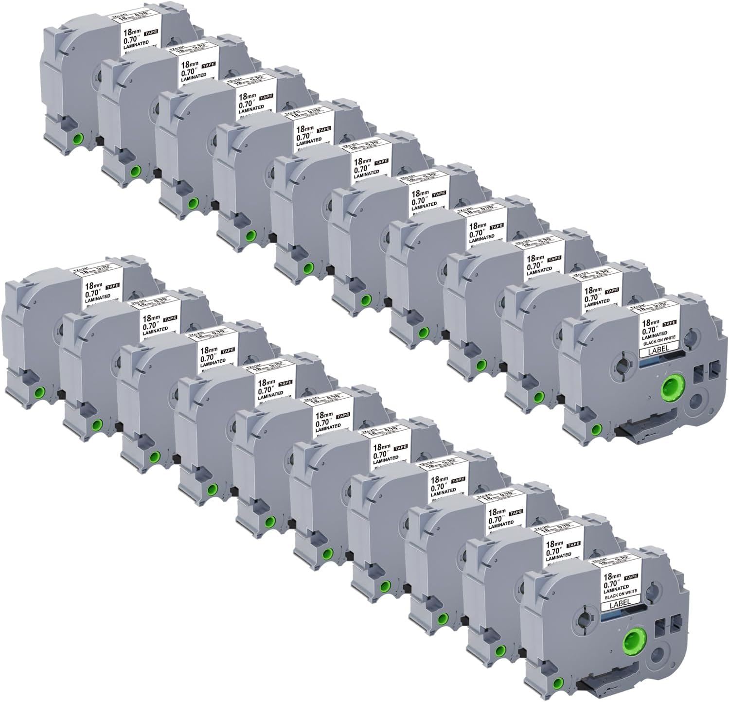 18mm 0.7 Laminated White Tape TZe-241 Compatible with Brother P Touch Label Maker PTD410 PT-D400 D610BT PT-D600 PT-2700 PT-1880, TZe Tz Tape 3/4 Inch, Black on White, 20 Pack