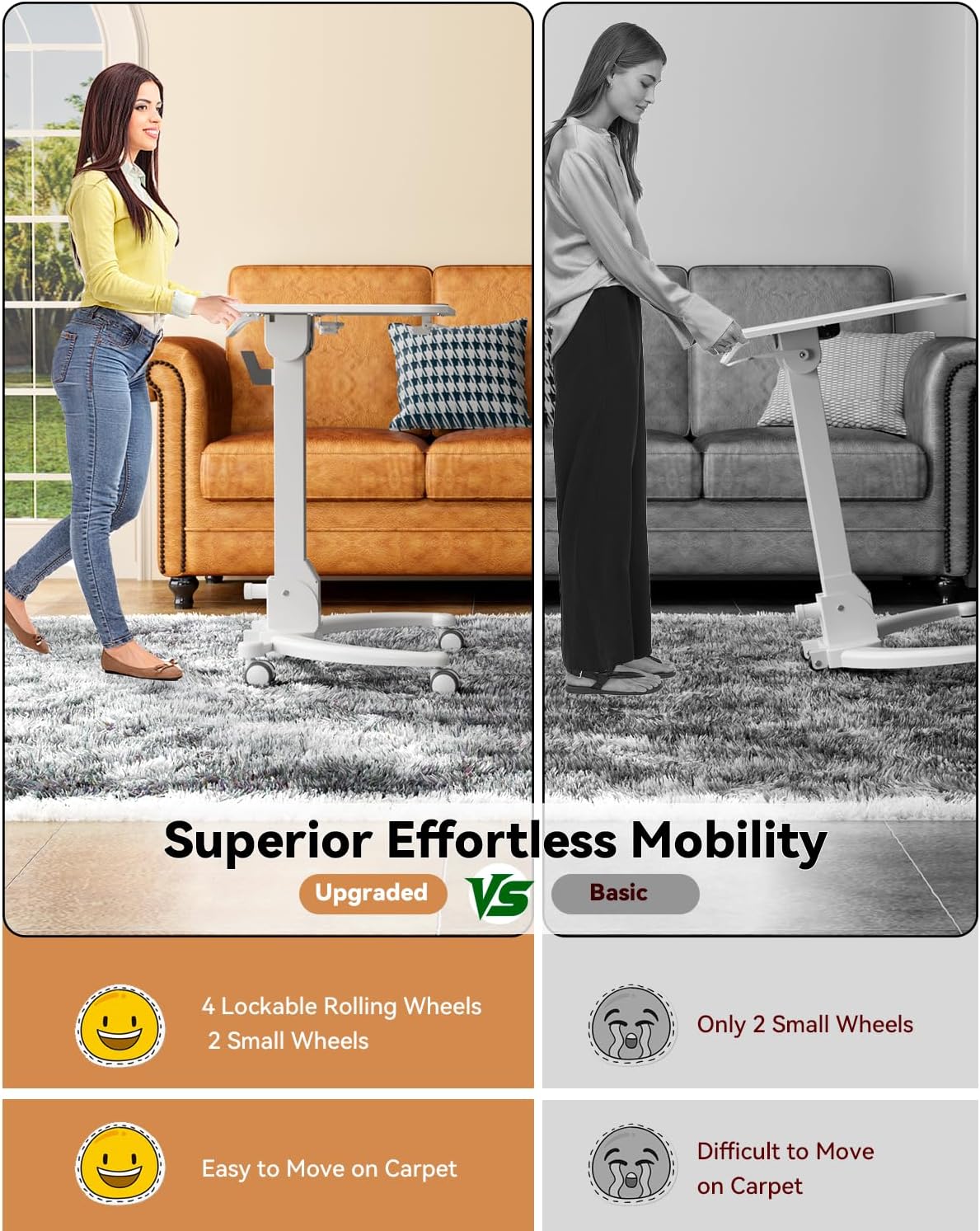 - Upgraded Dual Purpose Base: Solved the mobility issue of the first-generation foldable sit stand desk,this mobile desk retains the low base that can fit into small spaces as well as adds lockable wheels for easy movement