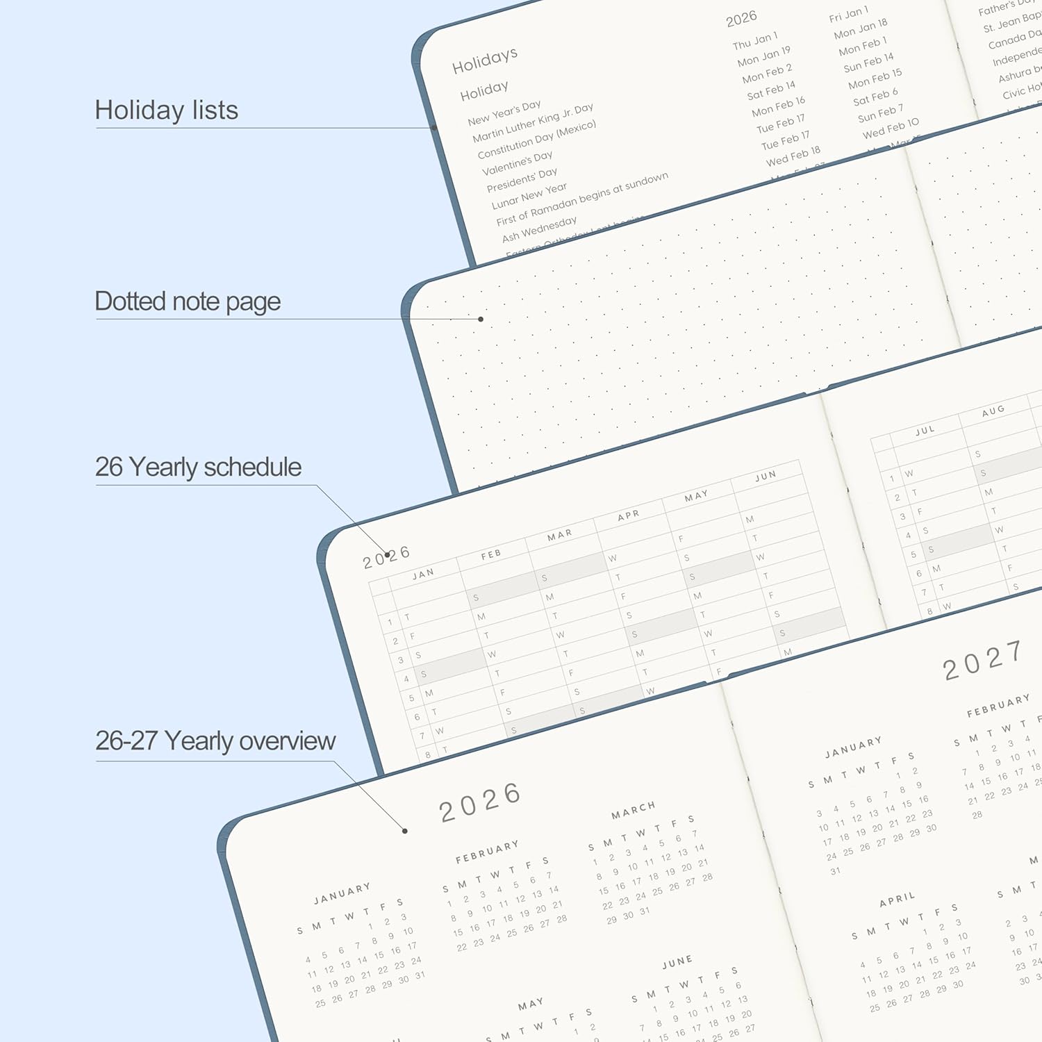 And Per Se 2026 Planner-Daily, Weekly & 15-Monthly Leather Hardcover Planner, 5.7" x 8", Daily Schedule, Monthly Tabs, 100 GSM Thick Paper, Back Pocket(Dark Blue)