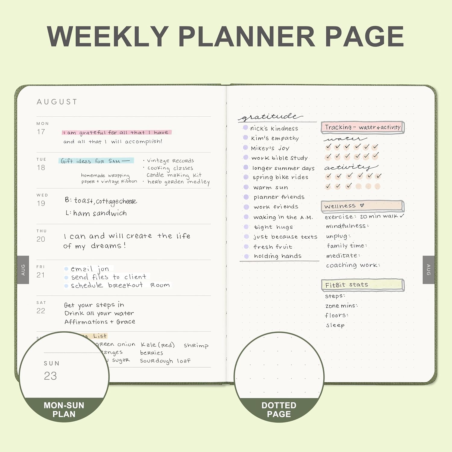 - WEEKLY VIEW:From Monday to Sunday, it provides ample space for line writing, and the dotted page on the right can be used to design and paint, which is easy to manage daily tasks.