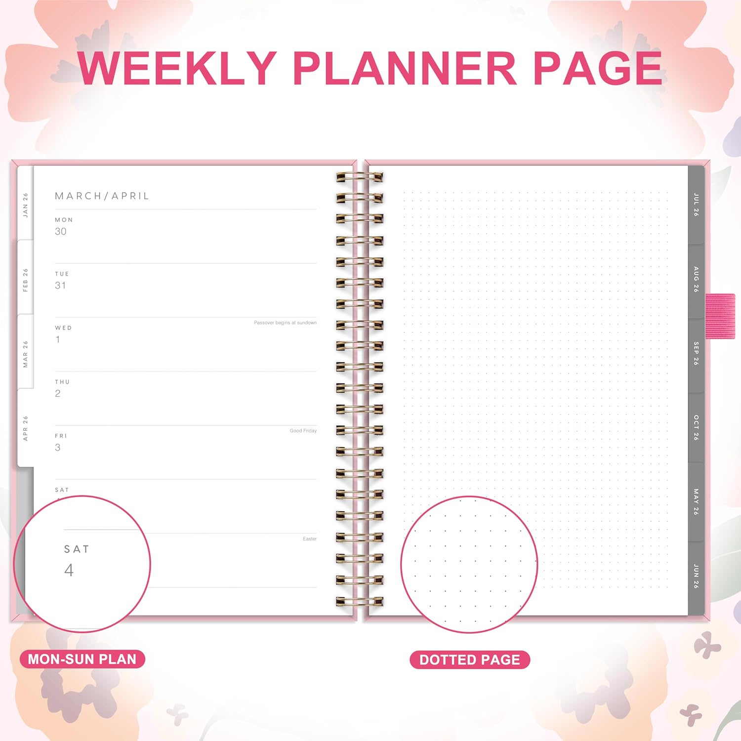- HIGH-QUALITY PAPER: The planner combines 100gsm thick high-quality paper ensures a pleasant writing experience with no ink bleed-through. The sturdy spiral bound allows it to lay flat your planner easily and keep the pages be static.