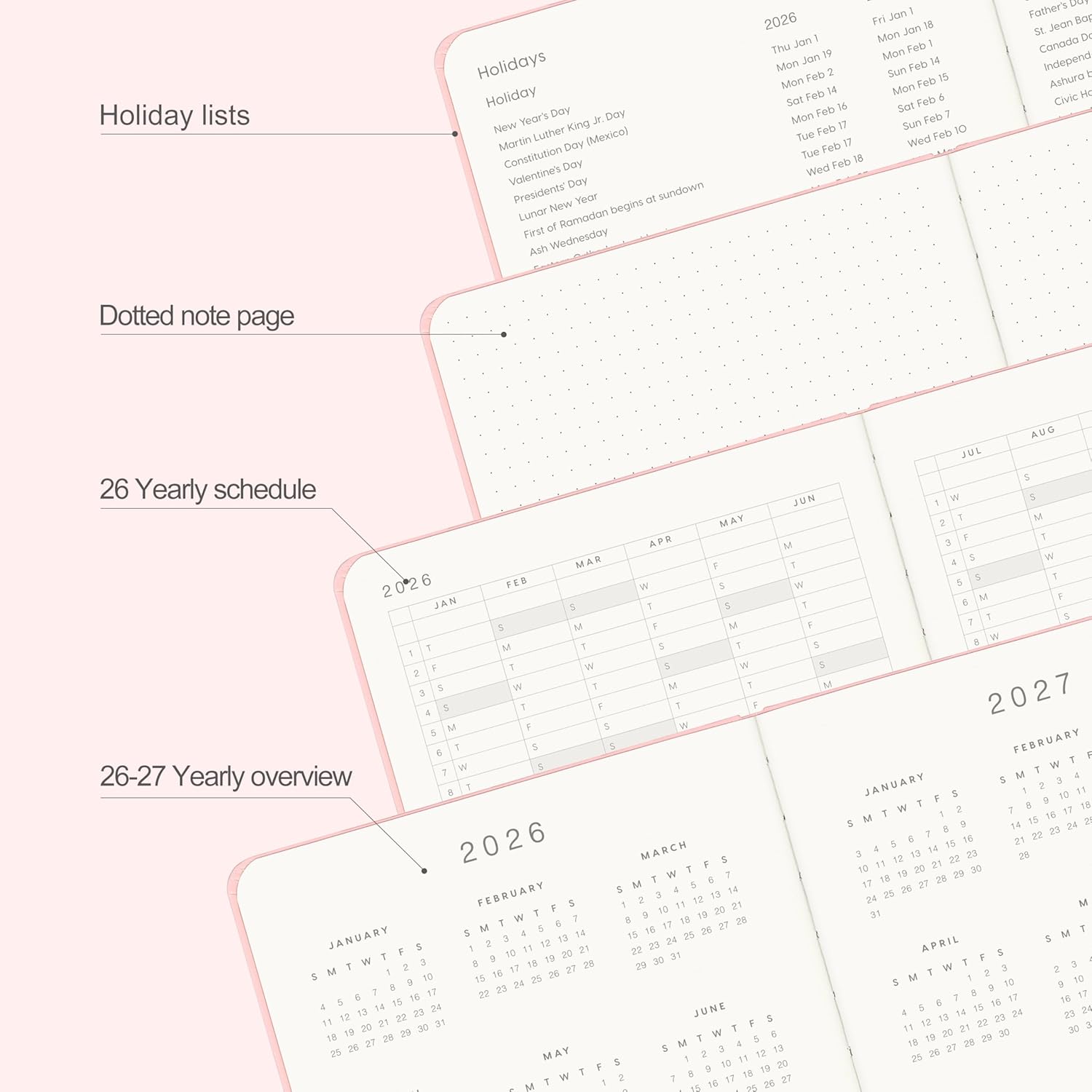 - MONTHLY OVERVIEW:Each date box provides enough writing space, including a display of holidays for each month, and the right notes row is additional planning space. 2 Ribbon bookmarks and month displays for easy navigation and lookup.