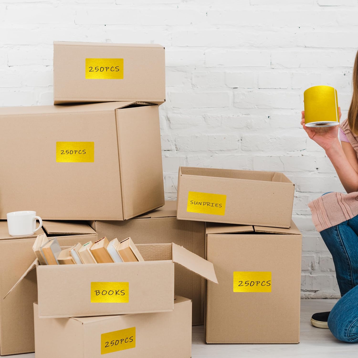 3 x 5 Inch 250Pcs Rectangle Color Coding Stickers,Strong Adhesion Easy to Write Label for Moving,Box Organization,Inventory,Business,Gold