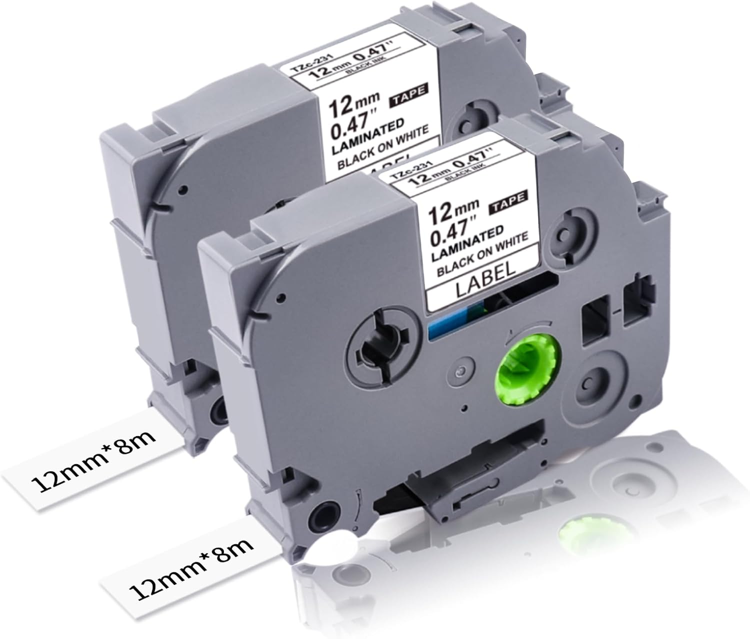 - Items : 2-pack tze-231 label maker tape compatible with Brother P Touch label tape TZe-231 black on white, 12mm x 8m (1/2in x 26.2ft).