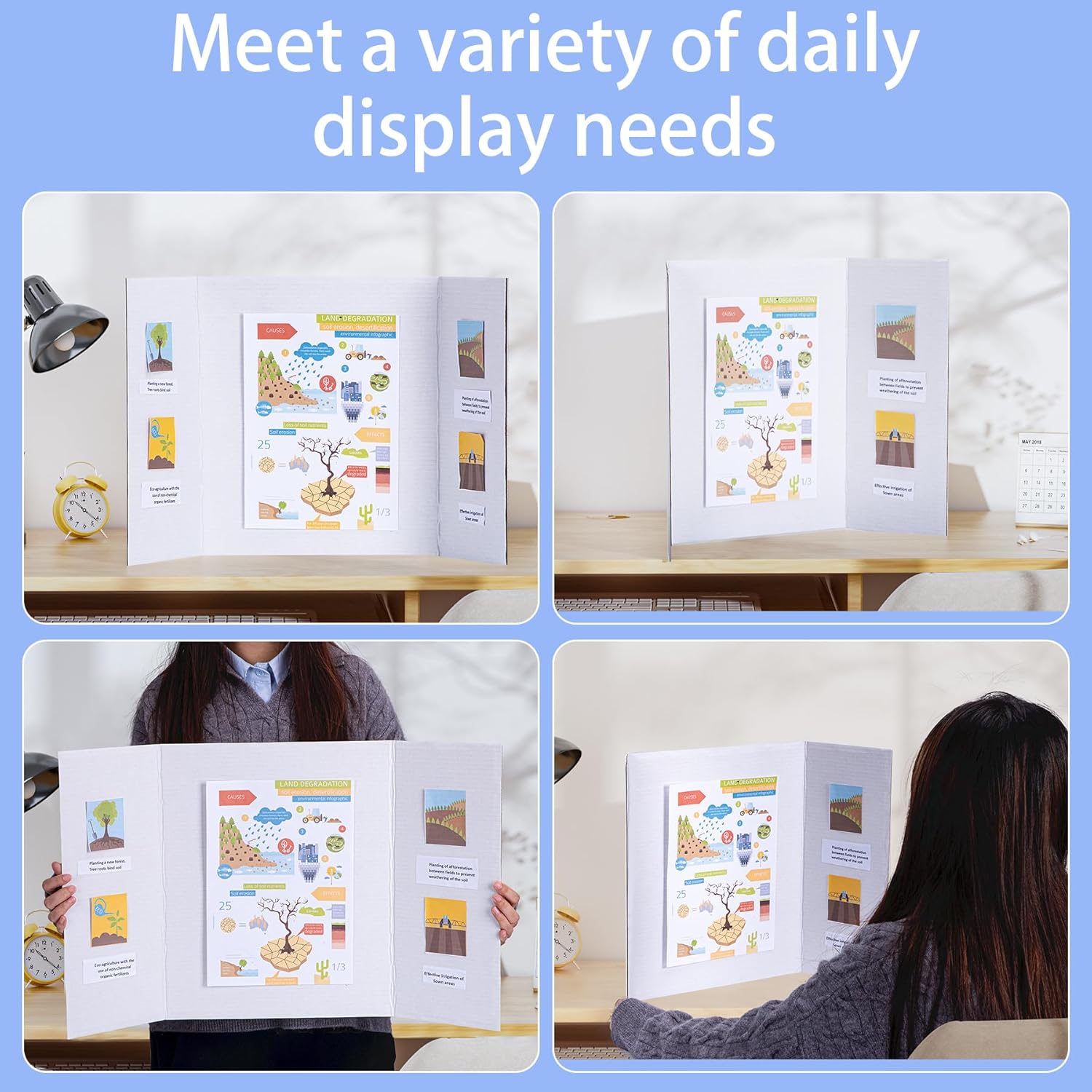 - Versatile Uses: These trifold poster boards are suitable for all kinds of creative display, can be used as a drawing board, can also be used as a picture display board, a presentation board, a science fair display board, a small project board in school, office, or home display